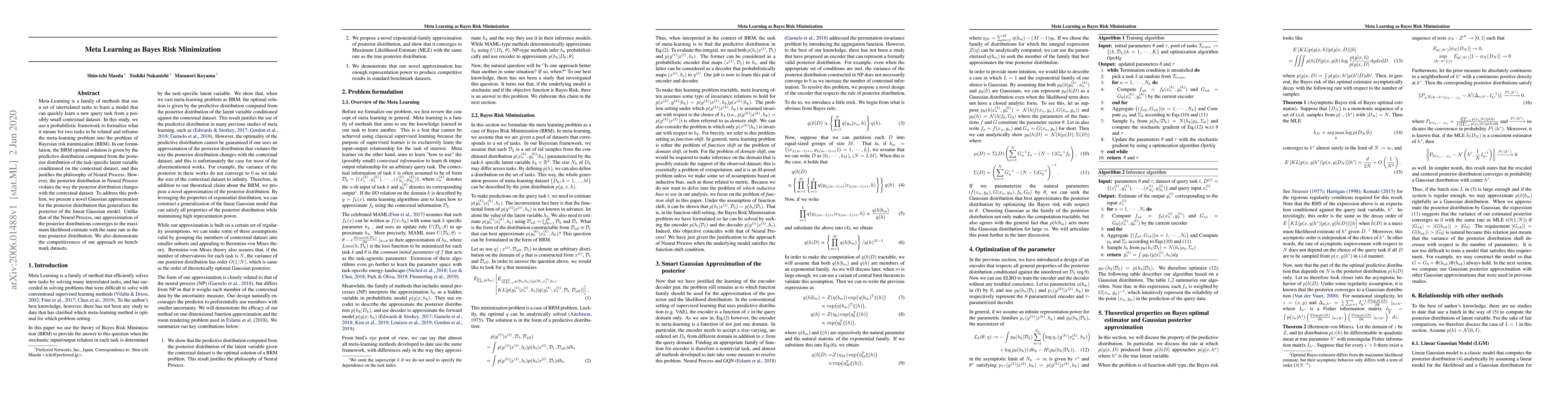 This research reframes meta-learning as Bayesian risk minimization (BRM), presenting a novel Gaussian approximation for posterior distribution that converges to maximum likelihood estimate. It validates Neural Process philosophy and demonstrates competitiveness on benchmark datasets.
