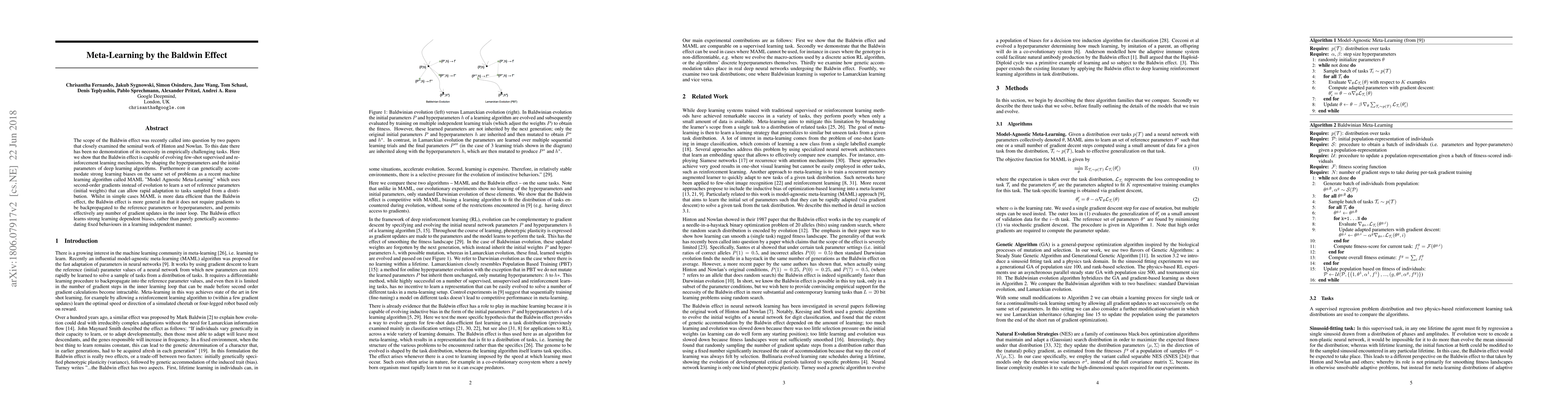 The scope of the Baldwin effect was recently called into question by two papers that closely examined the seminal work of Hinton and Nowlan. To this date there has been no demonstration of its necessity in empirically challenging tasks. Here we show that the Baldwin effect is capable of evolving few-shot supervised and reinforcement learning mechanisms, by shaping the hyperparameters and the initial parameters of deep learning algorithms. Furthermore it can genetically accommodate strong learning biases on the same set of problems as a recent machine learning algorithm called MAML "Model Agnostic Meta-Learning" which uses second-order gradients instead of evolution to learn a set of reference parameters (initial weights) that can allow rapid adaptation to tasks sampled from a distribution. Whilst in simple cases MAML is more data efficient than the Baldwin effect, the Baldwin effect is more general in that it does not require gradients to be backpropagated to the reference parameters or hyperparameters, and permits effectively any number of gradient updates in the inner loop. The Baldwin effect learns strong learning dependent biases, rather than purely genetically accommodating fixed behaviours in a learning independent manner.