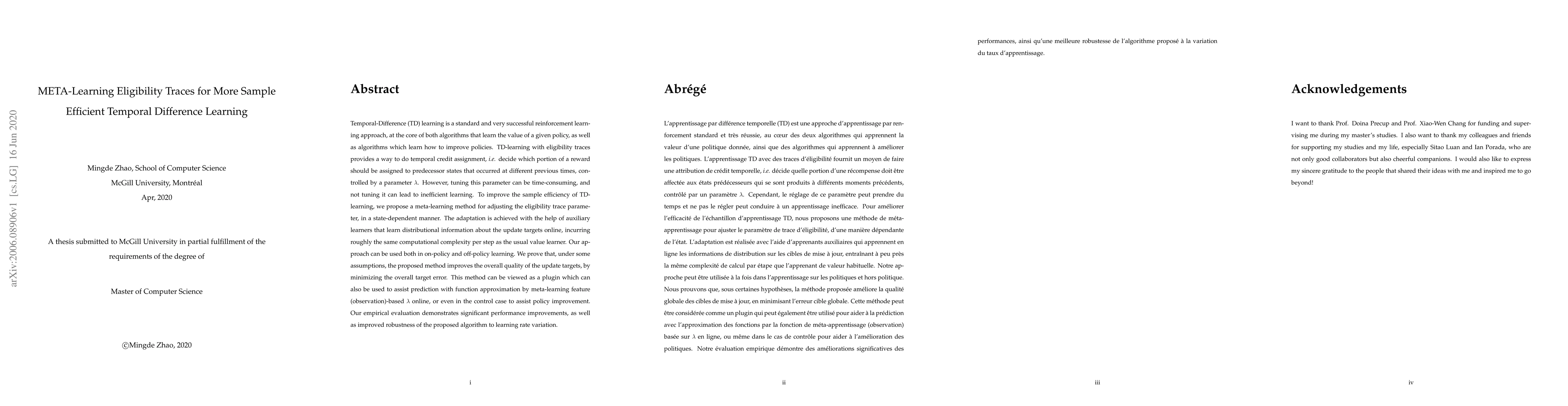 This paper proposes a meta-learning method to dynamically adjust eligibility trace parameters in Temporal-Difference learning, improving sample efficiency and learning robustness. The method uses auxiliary learners to adapt the parameter in a state-dependent manner, achieving significant performance improvements in both on-policy and off-policy settings.