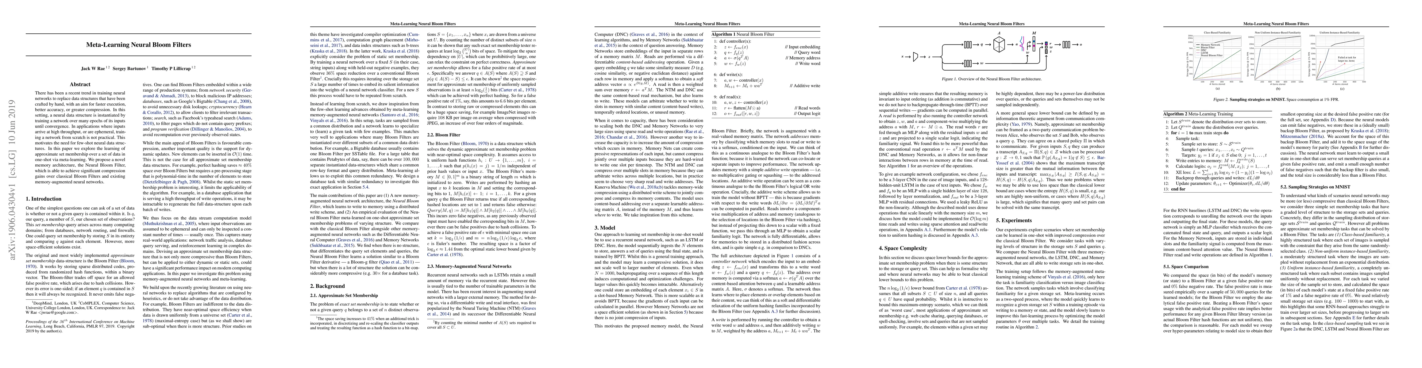 Researchers propose a novel neural data structure called the Neural Bloom Filter that learns to store set membership in one-shot via meta-learning, achieving significant compression gains over classical filters.