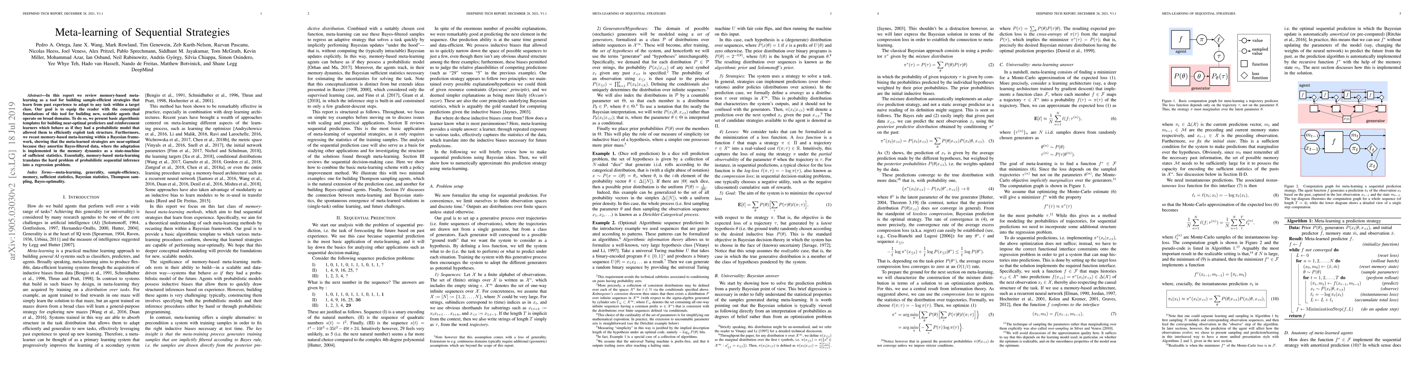 In this report we review memory-based meta-learning as a tool for building sample-efficient strategies that learn from past experience to adapt to any task within a target class. Our goal is to equip the reader with the conceptual foundations of this tool for building new, scalable agents that operate on broad domains. To do so, we present basic algorithmic templates for building near-optimal predictors and reinforcement learners which behave as if they had a probabilistic model that allowed them to efficiently exploit task structure. Furthermore, we recast memory-based meta-learning within a Bayesian framework, showing that the meta-learned strategies are near-optimal because they amortize Bayes-filtered data, where the adaptation is implemented in the memory dynamics as a state-machine of sufficient statistics. Essentially, memory-based meta-learning translates the hard problem of probabilistic sequential inference into a regression problem.