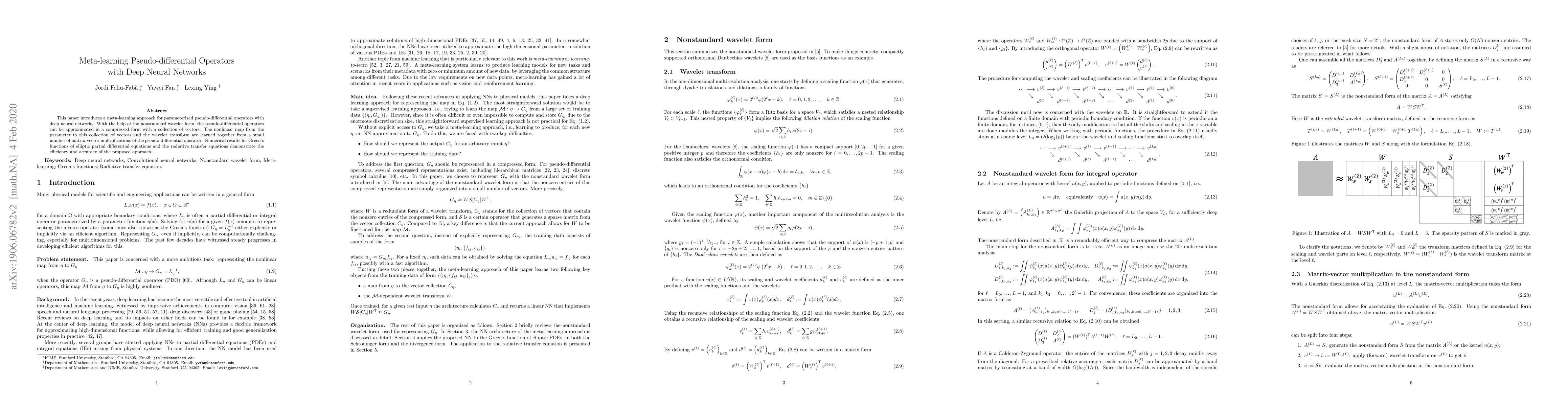 This paper proposes a meta-learning method for approximating pseudo-differential operators using deep neural networks, leveraging nonstandard wavelet forms. The approach learns a nonlinear map and wavelet transform from limited data, showing efficiency and accuracy in solving elliptic PDEs and radiative transfer equations.