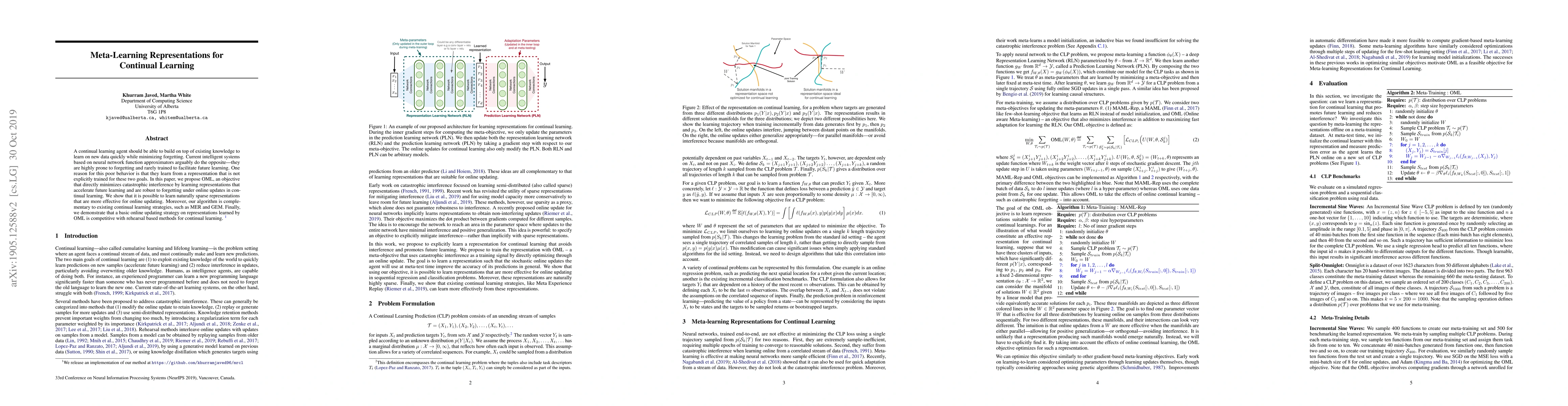This paper proposes OML, an objective to minimize catastrophic interference in continual learning by learning robust, sparse representations that facilitate future learning while reducing forgetting. The method is shown to be competitive with rehearsal-based strategies and complements existing continual learning techniques.