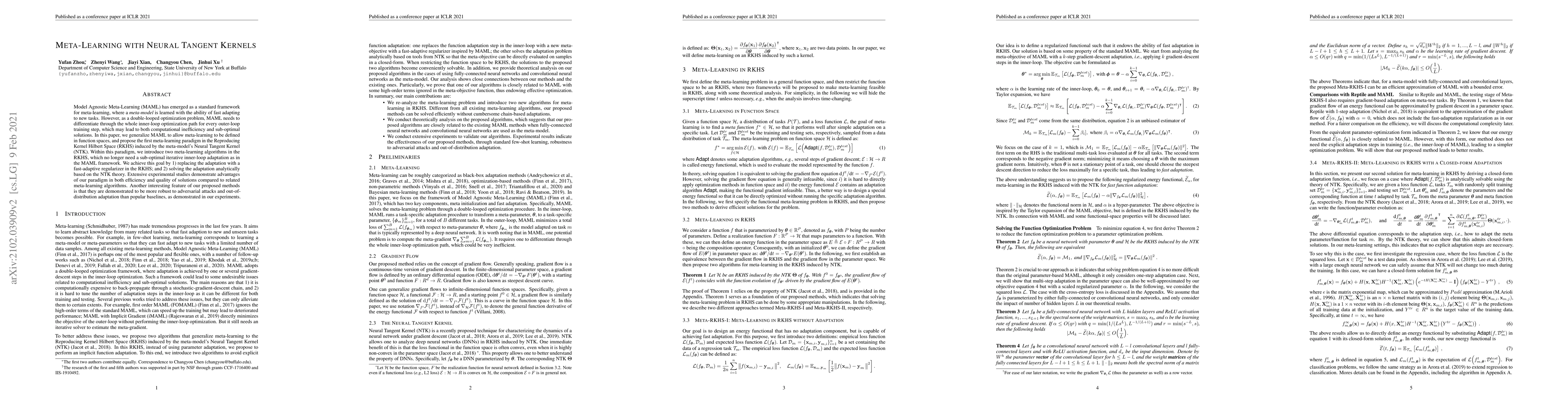 This paper proposes a new meta-learning paradigm that improves efficiency and solution quality, while also offering robustness to adversarial attacks, by generalizing model-agnostic meta-learning to function spaces using Neural Tangent Kernels.