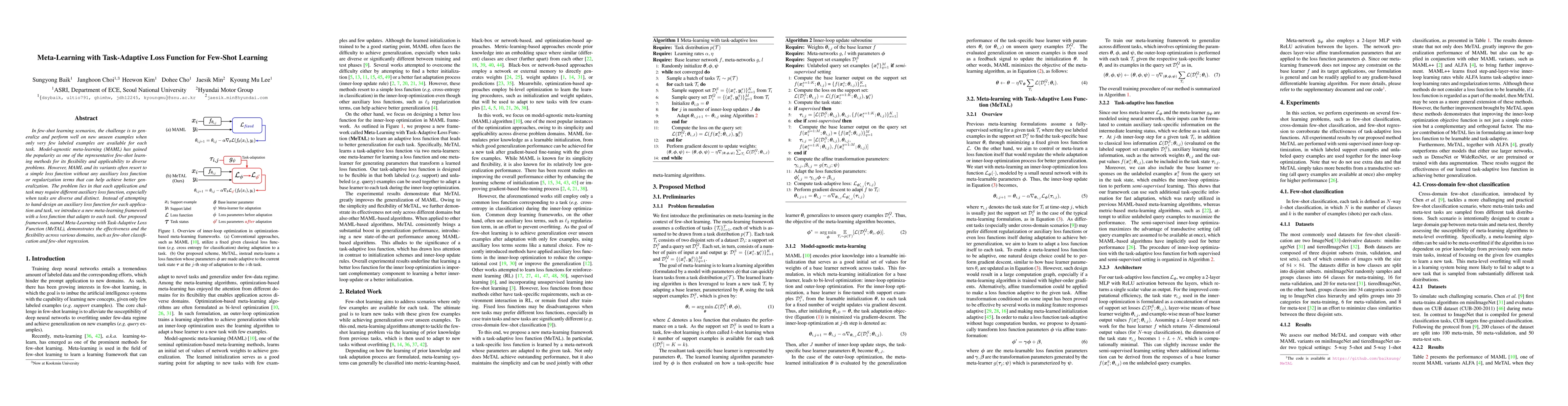 This paper proposes a meta-learning framework called MeTAL that introduces a task-adaptive loss function to improve few-shot learning performance. Unlike traditional methods, MeTAL dynamically adjusts its loss function based on the specific task, enhancing generalization across diverse applications.