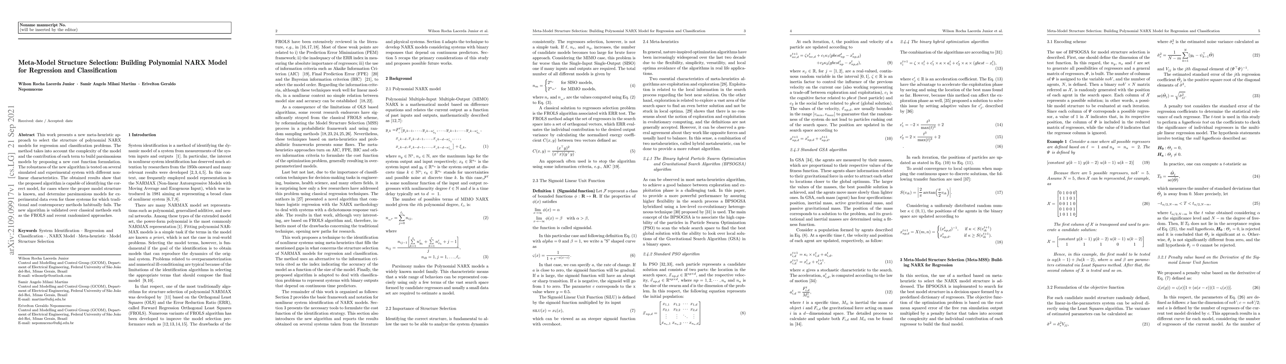 This work presents a new meta-heuristic approach to select the structure of polynomial NARX models for regression and classification problems. The method takes into account the complexity of the model and the contribution of each term to build parsimonious models by proposing a new cost function formulation. The robustness of the new algorithm is tested on several simulated and experimental system with different nonlinear characteristics. The obtained results show that the proposed algorithm is capable of identifying the correct model, for cases where the proper model structure is known, and determine parsimonious models for experimental data even for those systems for which traditional and contemporary methods habitually fails. The new algorithm is validated over classical methods such as the FROLS and recent randomized approaches.