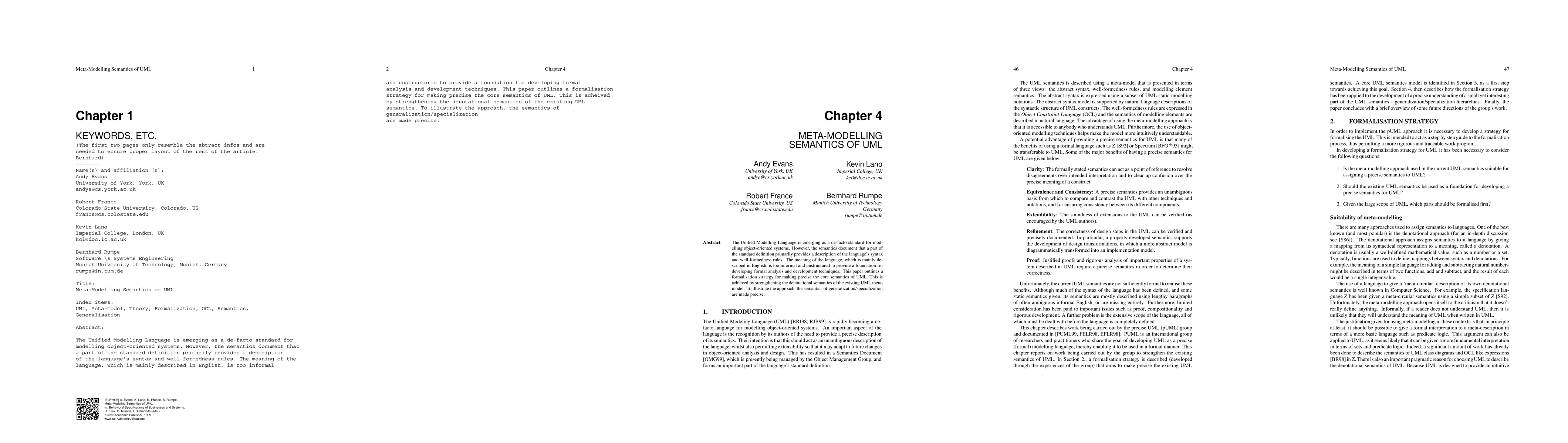 The paper proposes a method for strengthening the existing UML metamodel to provide a more precise denotational semantics, particularly for generalization/specialization relationships.