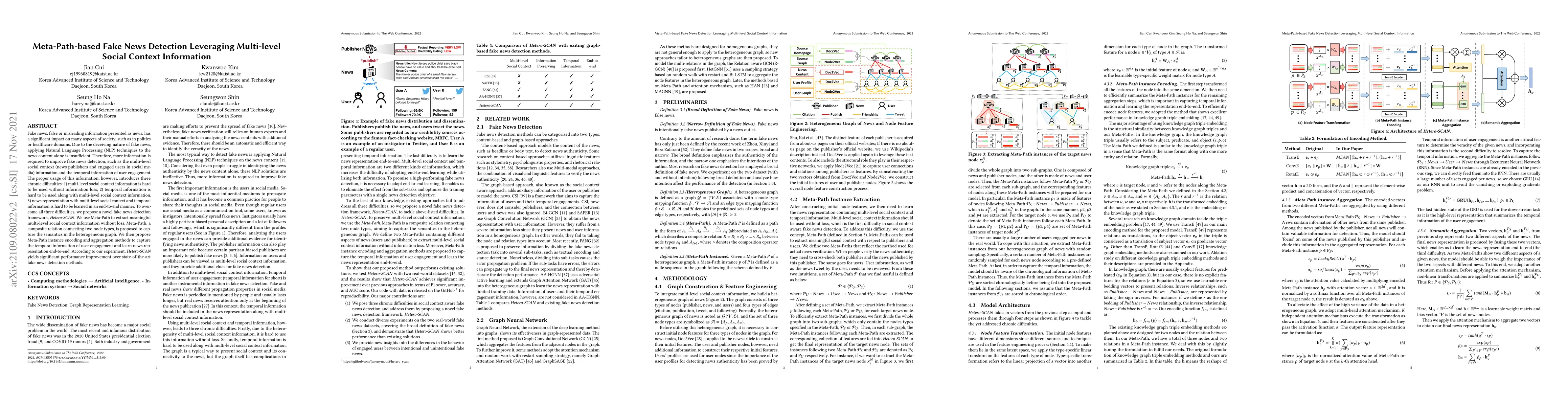 This paper proposes Hetero-SCAN, a novel framework for detecting fake news by leveraging multi-level social context and temporal information from news publishers and social media users. It uses Meta-Path to extract and encode meaningful social context without loss and effectively integrates temporal engagement data, achieving significant improvements over existing methods.