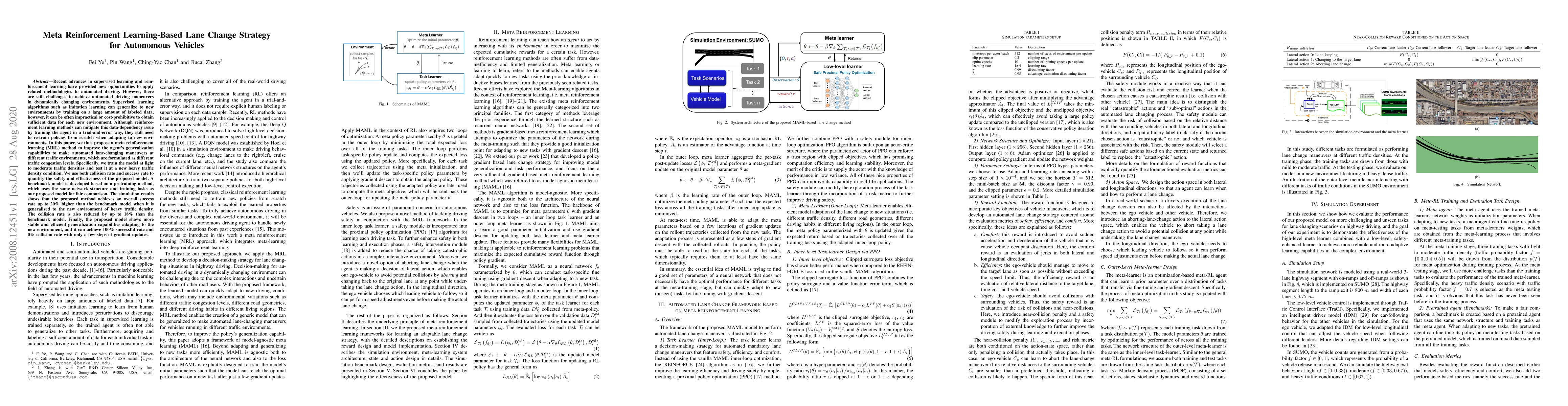 A meta reinforcement learning approach is proposed to improve autonomous lane-changing maneuvers in dynamically changing environments, achieving a 20% higher success rate and 18% reduced collision rate compared to a benchmark model when generalizing to new heavy traffic conditions.
