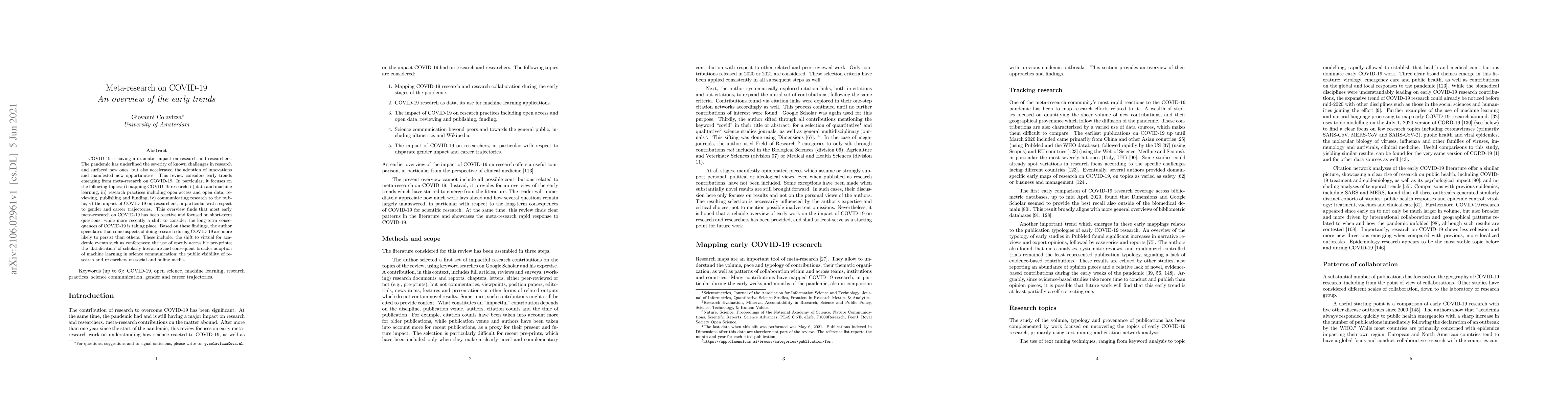 A COVID-19 research paper reviews early trends in meta-research, noting shifts towards virtual conferences, open access, and machine learning, with potential long-term consequences. The study speculates that some pandemic-era changes will persist in academia.