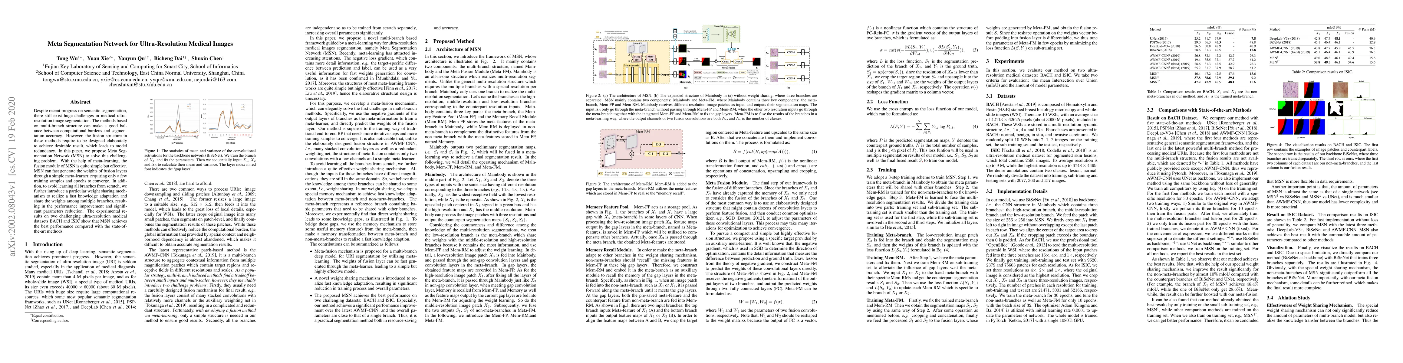 Despite recent progress on semantic segmentation, there still exist huge challenges in medical ultra-resolution image segmentation. The methods based on multi-branch structure can make a good balance between computational burdens and segmentation accuracy. However, the fusion structure in these methods require to be designed elaborately to achieve desirable result, which leads to model redundancy. In this paper, we propose Meta Segmentation Network (MSN) to solve this challenging problem. With the help of meta-learning, the fusion module of MSN is quite simple but effective. MSN can fast generate the weights of fusion layers through a simple meta-learner, requiring only a few training samples and epochs to converge. In addition, to avoid learning all branches from scratch, we further introduce a particular weight sharing mechanism to realize a fast knowledge adaptation and share the weights among multiple branches, resulting in the performance improvement and significant parameters reduction. The experimental results on two challenging ultra-resolution medical datasets BACH and ISIC show that MSN achieves the best performance compared with the state-of-the-art methods.