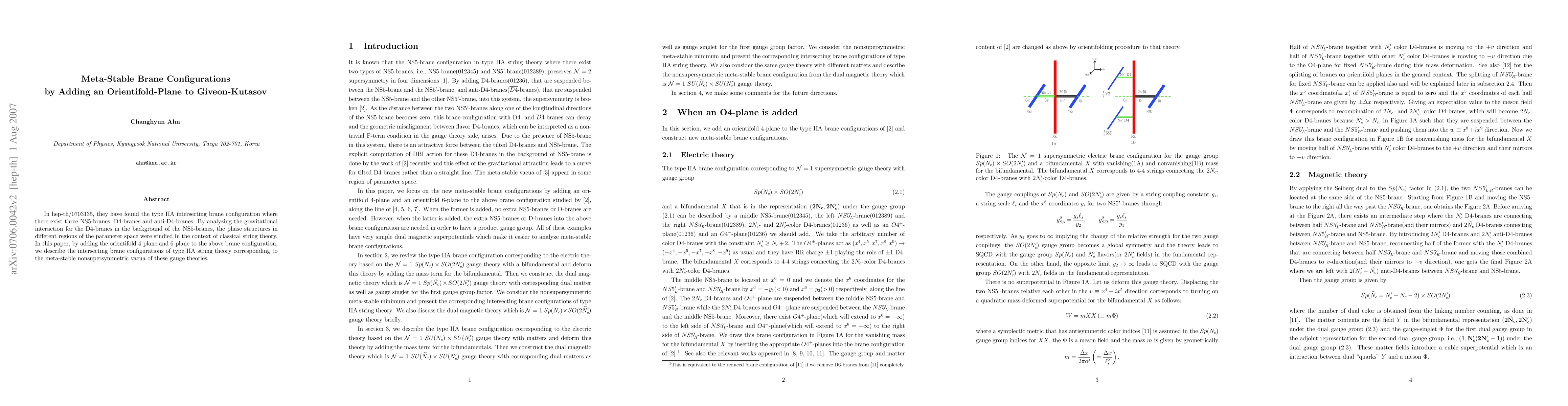 This paper investigates type IIA string theory brane configurations by adding orientifold planes to existing setups involving NS5-branes and D4-branes. The study focuses on the meta-stable, nonsupersymmetric vacua resulting from these new intersecting brane configurations.