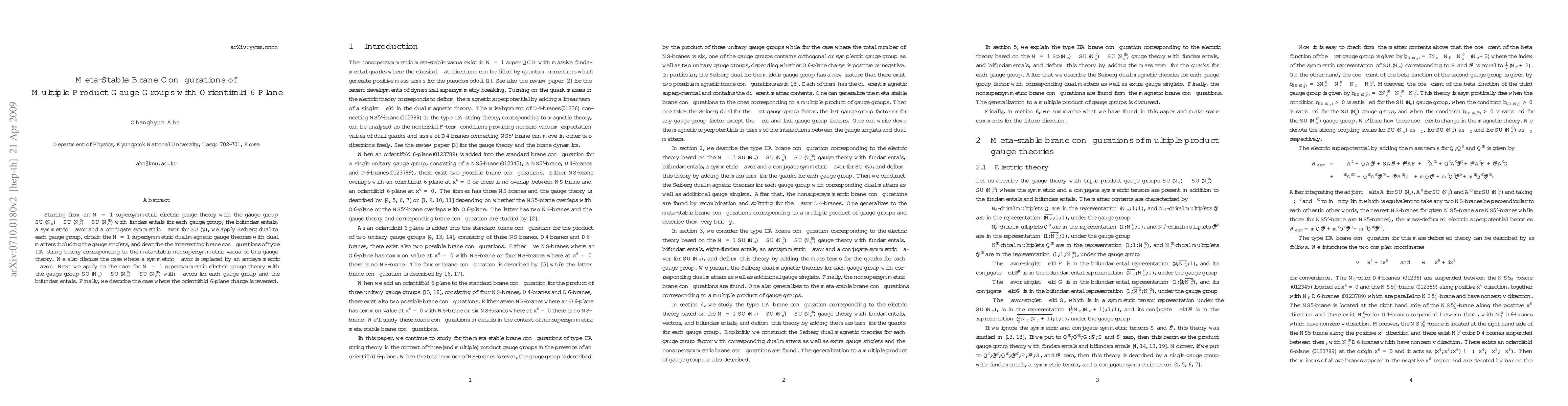 This paper investigates meta-stable brane configurations in N=1 supersymmetric gauge theories with product gauge groups, applying Seiberg duality and exploring intersecting brane setups in type IIA string theory, including variations with different flavor representations and reversed orientifold 6-plane charges.
