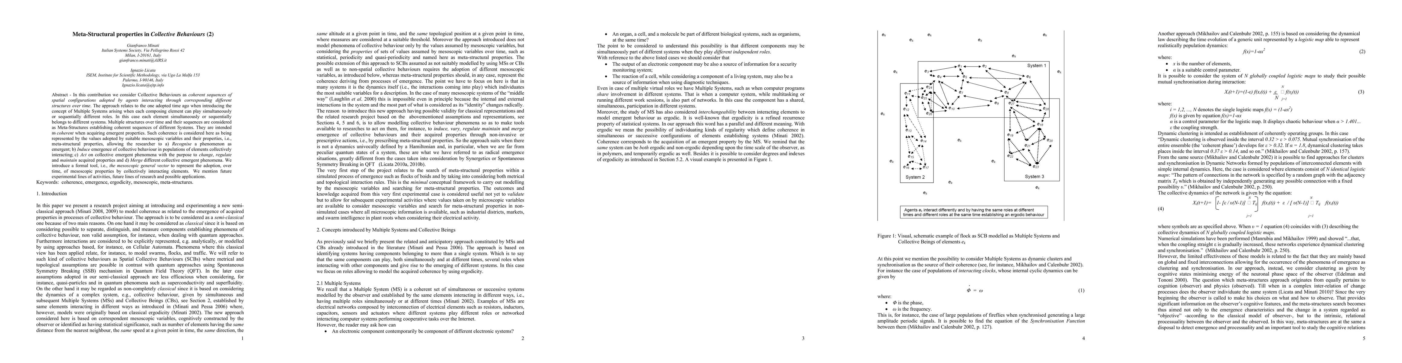 In this contribution we consider Collective Behaviours as coherent sequences of spatial configurations adopted by interacting agents through corresponding different structures over time. Multiple structures over time and their sequences are considered as Meta-Structures establishing sequences of spatial configurations. They are intended as coherent when acquiring emergent properties. This coherence is considered here as being represented by the values adopted by suitable mesoscopic variables and their properties, i.e., meta-structural properties, allowing the researcher to a) Recognise a phenomenon as emergent; b) Induce emergence of collective behaviour in populations of agents collectively interacting; c) Act on collective emergent phenomena with the purpose to change, regulate and maintain acquired properties and d) Merge different collective emergent phenomena. We introduce a formal tool, i.e., the mesoscopic general vector to represent the adoption, over time, of mesoscopic properties by collectively interacting elements. We mention future experimental lines of activities, future lines of research and possible applications. Keywords: coherence, emergence, ergodicity, mesoscopic, meta-structures.