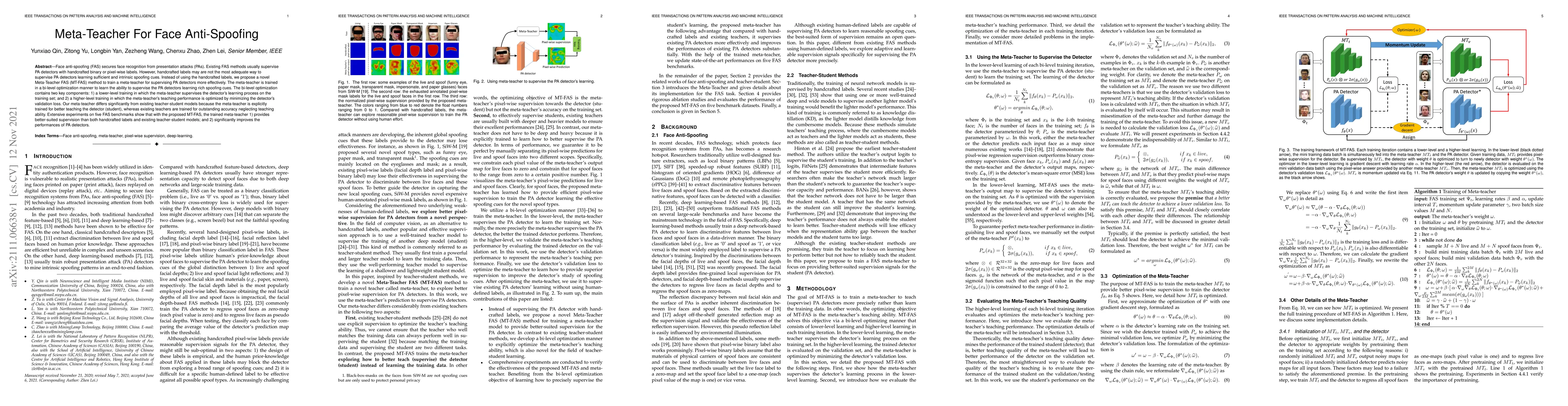 The paper proposes a Meta-Teacher FAS (MT-FAS) method to enhance face anti-spoofing (FAS) by training a meta-teacher to supervise presentation attack detectors more effectively. The meta-teacher is trained via bi-level optimization to learn to teach the detector to recognize spoofing cues, significantly improving detector performance over existing methods.