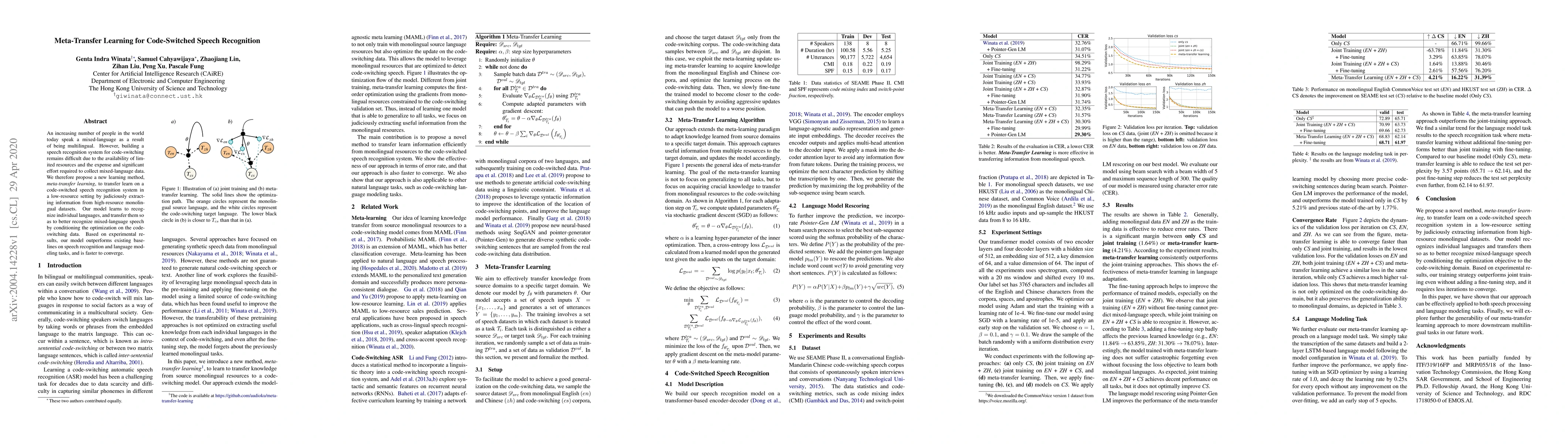 This paper proposes meta-transfer learning for code-switched speech recognition, leveraging high-resource monolingual datasets to address the scarcity of mixed-language data. The model effectively recognizes and transfers individual languages to better handle code-switching, outperforming existing methods and converging faster.