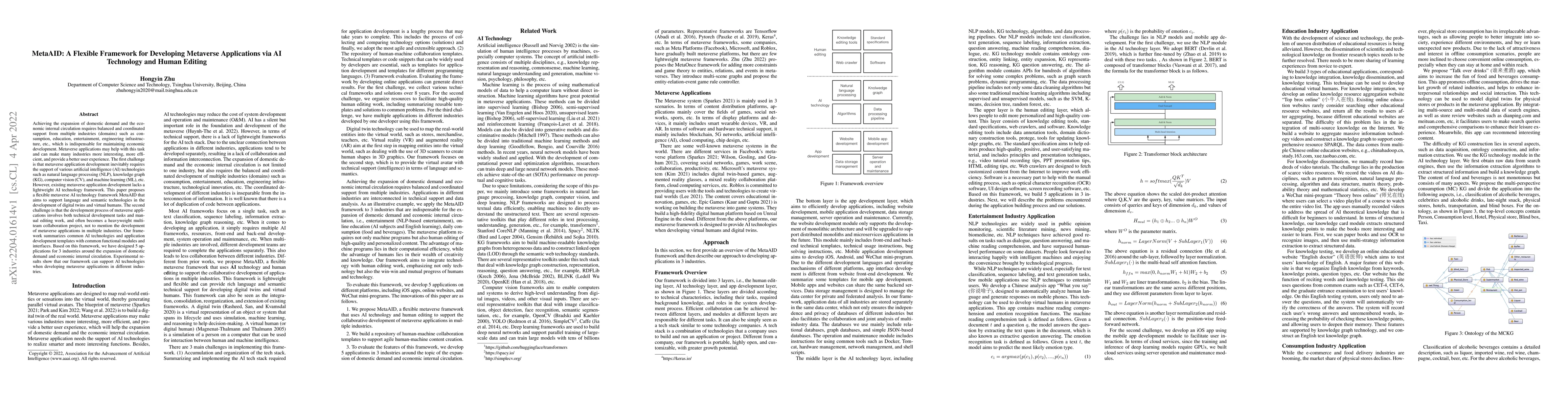 This paper introduces metaAID, a flexible framework for developing metaverse applications that leverages AI technology and human editing to support various industries.