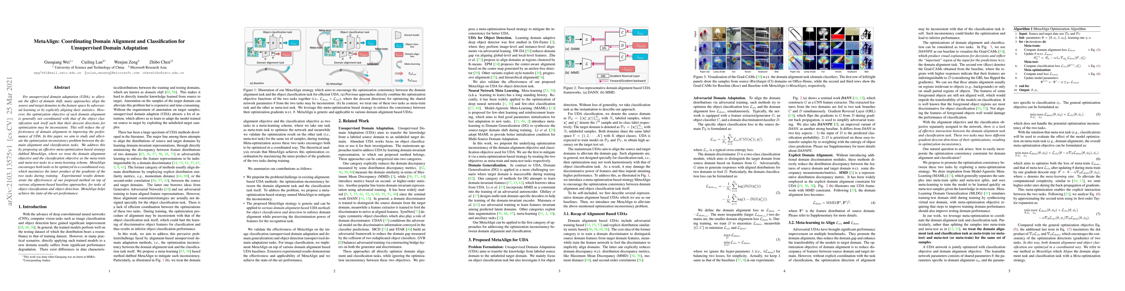 This paper proposes MetaAlign, a meta-learning approach that coordinates domain alignment with classification tasks for unsupervised domain adaptation, achieving state-of-the-art performance.