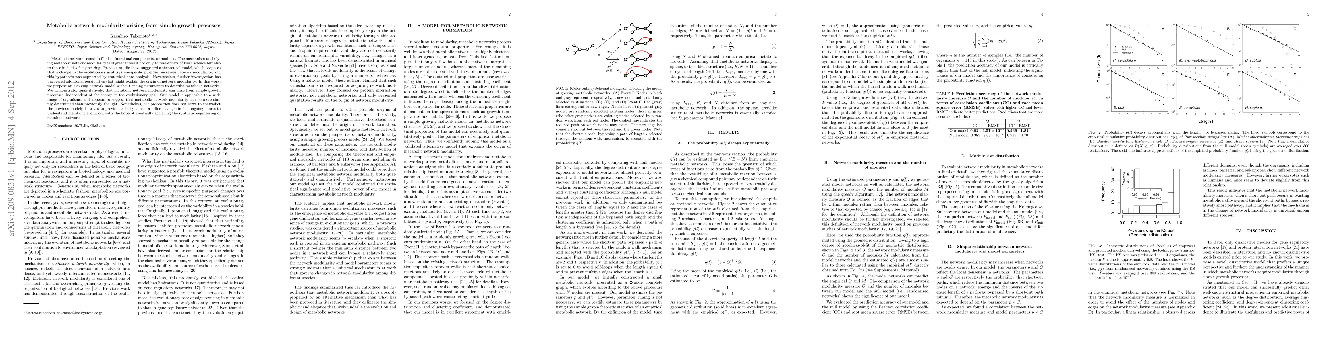 This paper proposes a simple evolving network model to demonstrate that metabolic network modularity can arise from basic growth processes, independent of changes in evolutionary goals. The authors suggest that this modularity may be more straightforward than previously thought, offering a complementary perspective on metabolic network evolution.