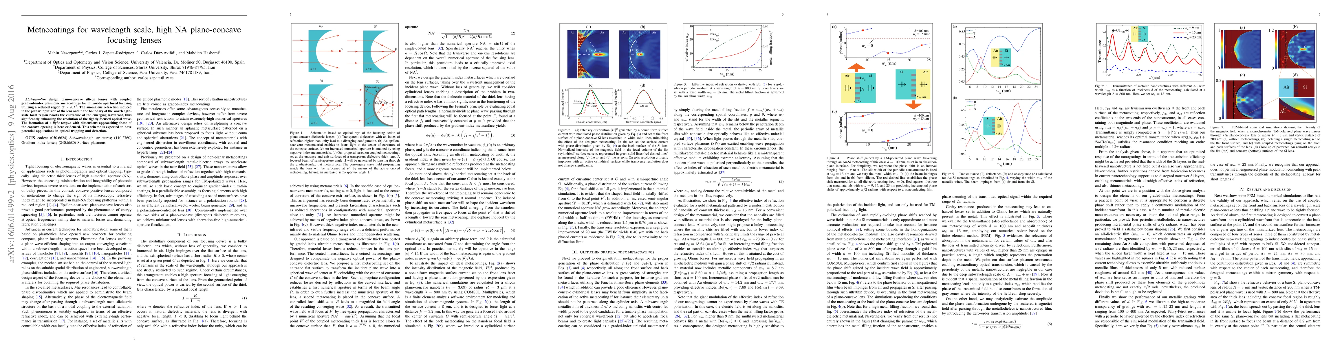 This research designs plano-concave silicon lenses with gradient-index plasmonic metacoatings to enhance resolution in ultrawide aperture focusing, achieving light tongue formation. The design is proposed for applications in optical trapping and detection.