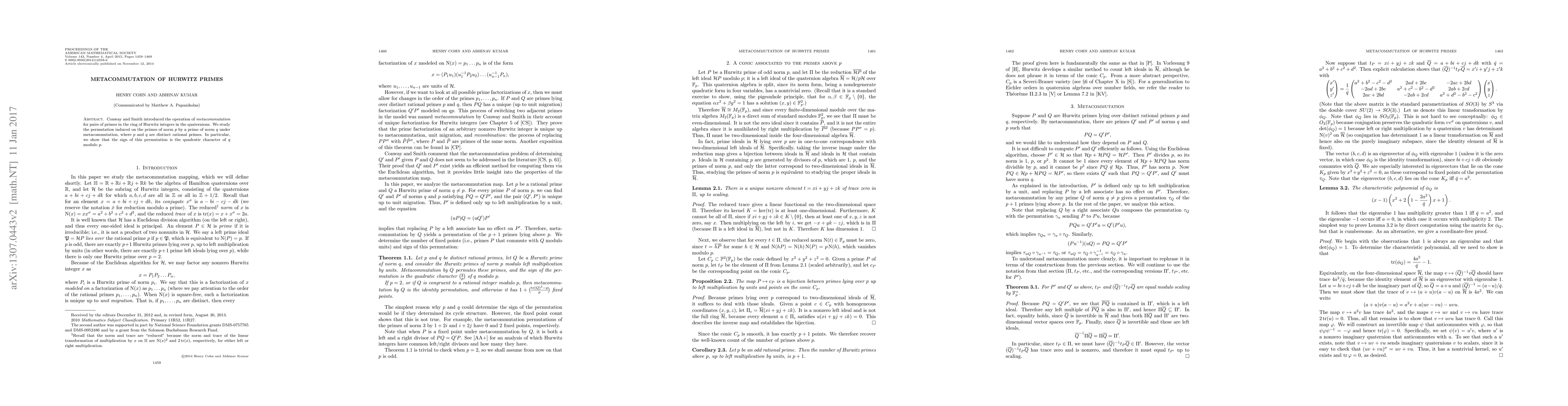 The paper provides a detailed analysis of the permutation induced by metacommutation of Hurwitz primes, linking it to quadratic characters.
