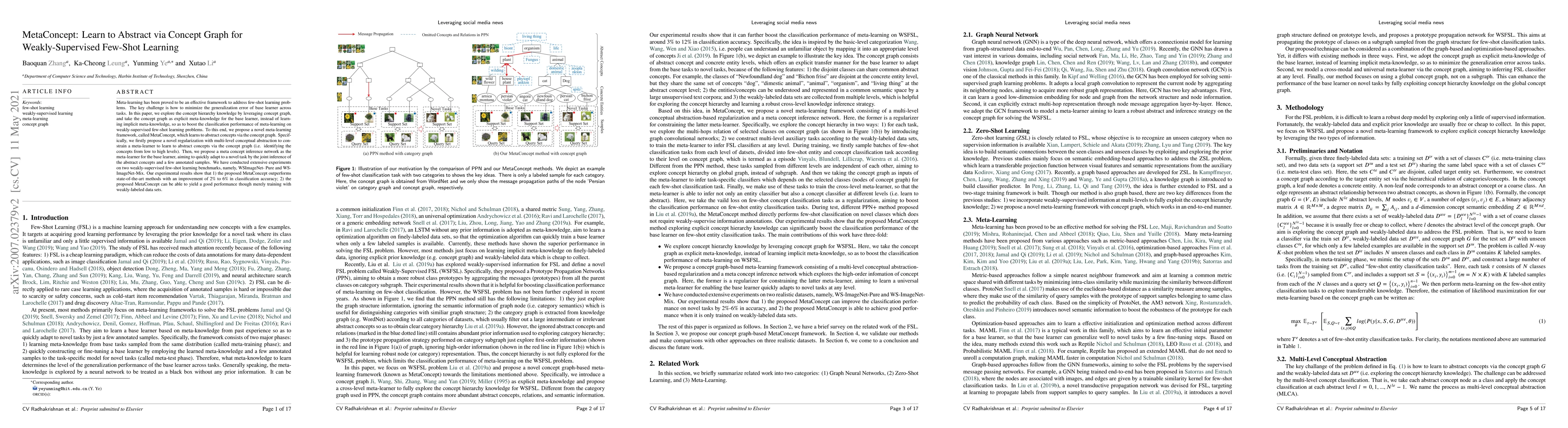 MetaConcept leverages a concept graph to provide explicit meta-knowledge for a meta-learner, enhancing few-shot learning performance in weakly-supervised settings. Experimental results show significant improvements over state-of-the-art methods, demonstrating the effectiveness of the proposed approach.