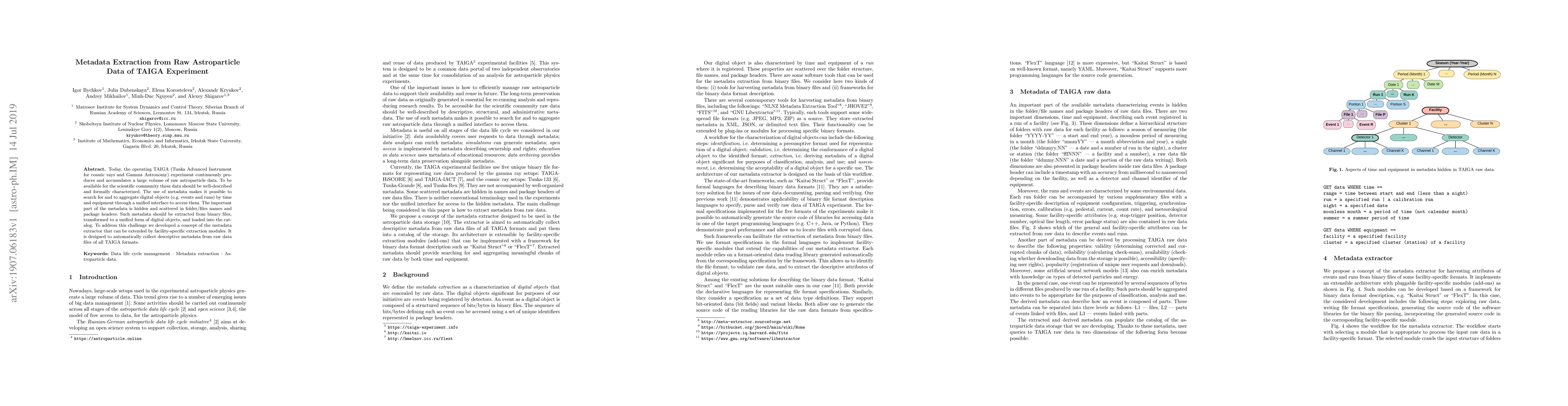 This paper discusses the development of a metadata extractor for the TAIGA experiment, designed to automatically extract and organize metadata from raw astroparticle data, transforming it into a unified digital format for better accessibility and searchability by the scientific community. The extractor is modular and can be extended with facility-specific extraction modules to handle various data formats.