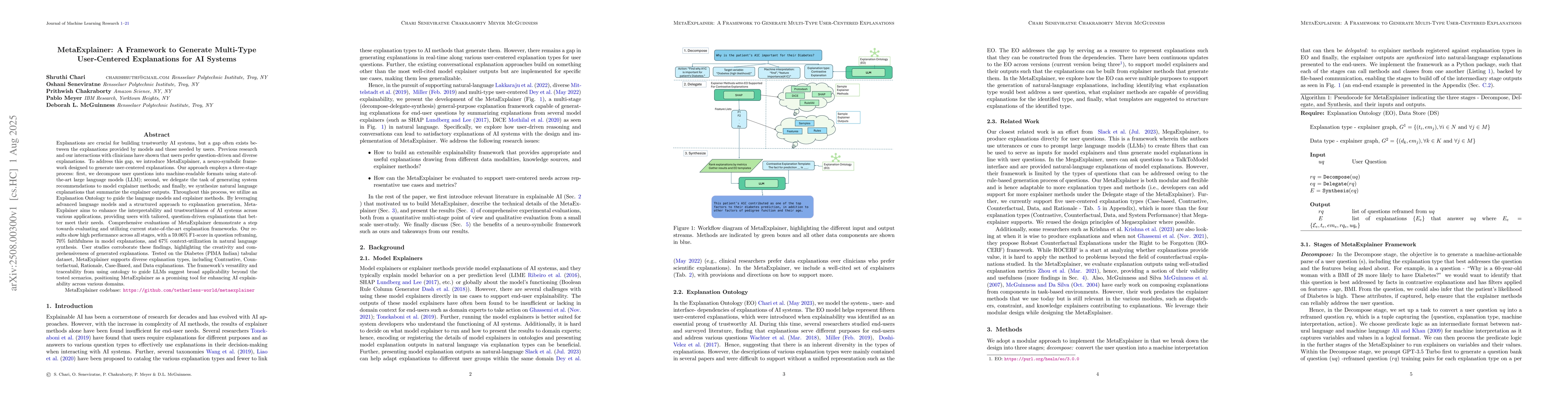 Explanations are crucial for building trustworthy AI systems, but a gap often exists between the explanations provided by models and those needed by users. To address this gap, we introduce MetaExplainer, a neuro-symbolic framework designed to generate user-centered explanations. Our approach employs a three-stage process: first, we decompose user questions into machine-readable formats using state-of-the-art large language models (LLM); second, we delegate the task of generating system recommendations to model explainer methods; and finally, we synthesize natural language explanations that summarize the explainer outputs. Throughout this process, we utilize an Explanation Ontology to guide the language models and explainer methods. By leveraging LLMs and a structured approach to explanation generation, MetaExplainer aims to enhance the interpretability and trustworthiness of AI systems across various applications, providing users with tailored, question-driven explanations that better meet their needs. Comprehensive evaluations of MetaExplainer demonstrate a step towards evaluating and utilizing current state-of-the-art explanation frameworks. Our results show high performance across all stages, with a 59.06% F1-score in question reframing, 70% faithfulness in model explanations, and 67% context-utilization in natural language synthesis. User studies corroborate these findings, highlighting the creativity and comprehensiveness of generated explanations. Tested on the Diabetes (PIMA Indian) tabular dataset, MetaExplainer supports diverse explanation types, including Contrastive, Counterfactual, Rationale, Case-Based, and Data explanations. The framework's versatility and traceability from using ontology to guide LLMs suggest broad applicability beyond the tested scenarios, positioning MetaExplainer as a promising tool for enhancing AI explainability across various domains.