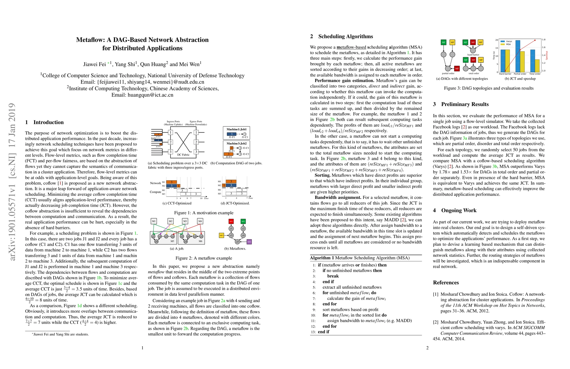 A new network abstraction called metaflow is proposed to improve distributed application performance by capturing dependencies between computation and communication, outperforming coflow-based algorithms by 1.78x.