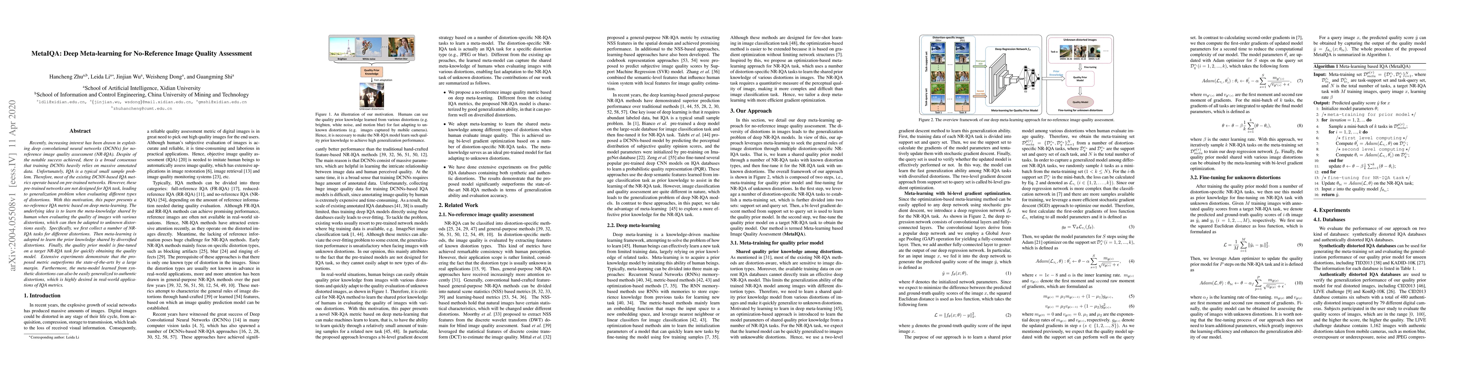 This paper introduces MetaIQA, a deep meta-learning approach for no-reference image quality assessment (NR-IQA) that addresses the challenge of limited annotated data. By leveraging meta-learning to extract shared knowledge across different image distortions, the proposed method effectively generalizes to new, unseen distortions, outperforming existing DCNN-based metrics and demonstrating potential for practical applications.