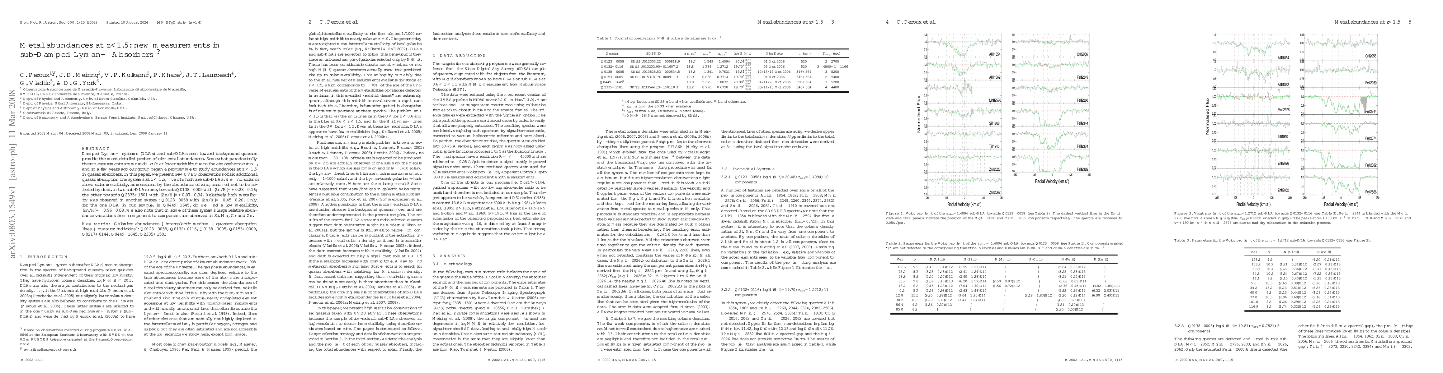 This paper reports new measurements of metal abundances in sub-Damped Lyman-alpha systems at redshifts less than 1.5, revealing solar or above solar metallicity in two sub-DLAs, with notable variations in abundances of Si, Mn, Cr, and Zn among different components.