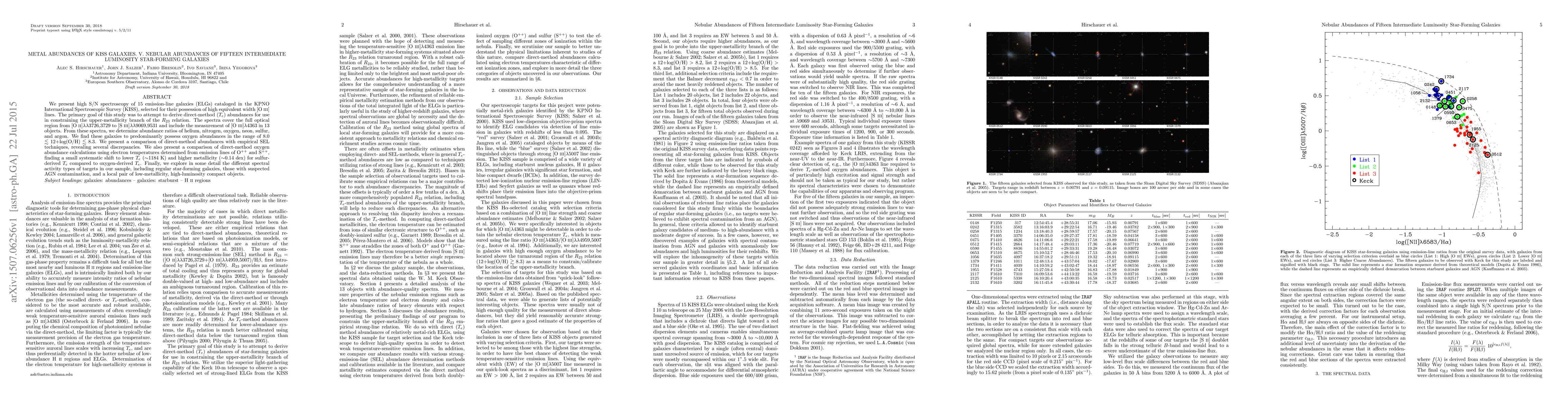 This study utilized a combination of spectroscopic observations from Keck and KISS follow-up spectroscopy to determine the oxygen abundance in 15 intermediate luminosity star-forming galaxies.
