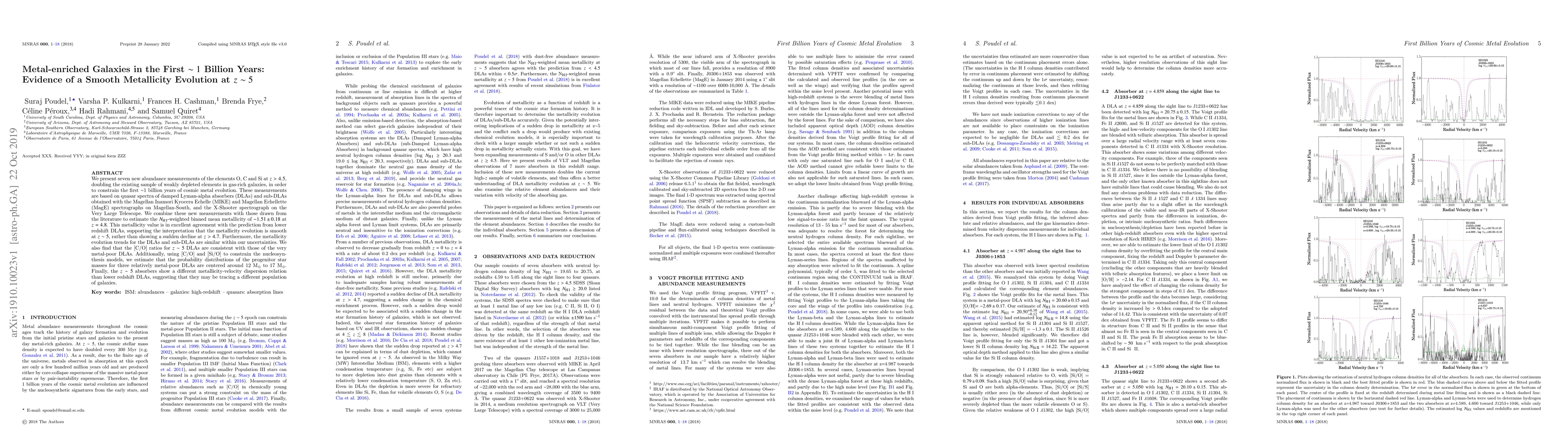 The research presents seven new metallicity measurements of elements O, C, and Si at z > 4.5 using quasar spectra from MIKE, MagE, and X-Shooter spectrographs, combined with literature data to constrain the first ~1 billion years of cosmic metal evolution.