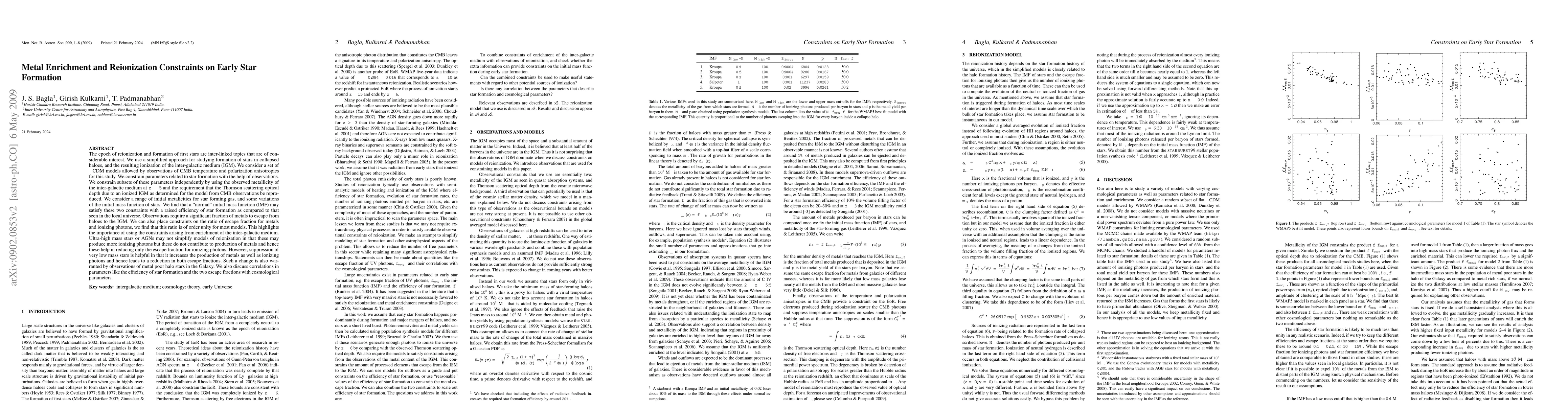 The epoch of reionization and formation of first stars are inter-linked topics that are of considerable interest. We use a simplified approach for studying formation of stars in collapsed haloes, and the resulting ionization of the inter-galactic medium (IGM). We consider a set of LCDM models allowed by observations of CMB temperature and polarization anisotropies for this study. We constrain parameters related to star formation with the help of observations. We constrain subsets of these parameters independently by using the observed metallicity of the inter-galactic medium at z ~ 5 and the requirement that the Thomson scattering optical depth due to an ionized IGM as determined for the model from CMB observations be reproduced. We consider a range of initial metalicities for star forming gas, and some variations of the initial mass function of stars. We find that a "normal" initial mass function (IMF) may satisfy these two constraints with a raised efficiency of star formation as compared to that seen in the local universe. Observations require a significant fraction of metals to escape from haloes to the IGM. We can also place constraints on the ratio of escape fraction for metals and ionizing photons, we find that this ratio is of order unity for most models. This highlights the importance of using the constraints arising from enrichment of the inter-galactic medium. (Abridged)