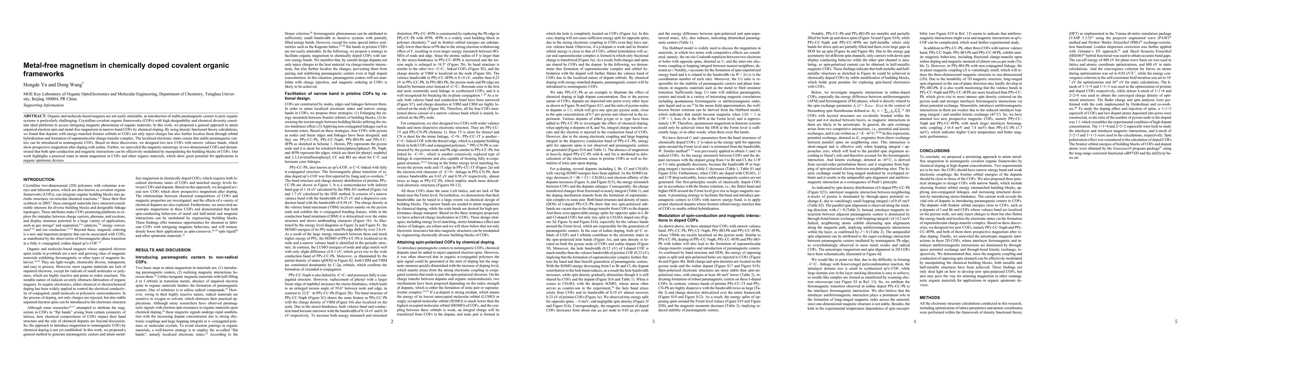 The research revealed the critical role of dopants in introducing paramagnetic centers to COFs, demonstrating that dopants with frontier orbital energies close to COFs can flatten energy bands and localize electronic states via supramolecular charge-transfer complex formation.