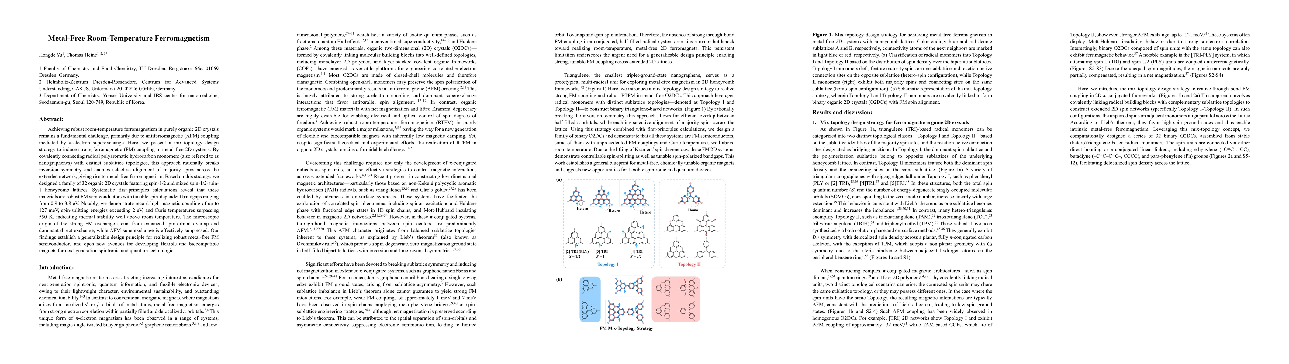 Achieving robust room-temperature ferromagnetism in purely organic 2D crystals remains a fundamental challenge, primarily due to antiferromagnetic (AFM) coupling mediated by {\pi}-electron superexchange. Here, we present a mix-topology design strategy to induce strong ferromagnetic (FM) coupling in metal-free 2D systems. By covalently connecting radical polyaromatic hydrocarbon monomers (also referred to as nanographenes) with distinct sublattice topologies, this approach rationally breaks inversion symmetry and enables selective alignment of majority spins across the extended network, giving rise to metal-free ferromagnetism. Based on this strategy, we designed a family of 32 organic 2D crystals featuring spin-1/2 and mixed spin-1/2-spin-1 honeycomb lattices. Systematic first-principles calculations reveal that these materials are robust FM semiconductors with tunable spin-dependent bandgaps ranging from 0.9 to 3.8 eV. Notably, we demonstrate record-high magnetic coupling of up to 127 meV, spin-splitting energies exceeding 2 eV, and Curie temperatures surpassing 550 K, indicating thermal stability well above room temperature. The microscopic origin of the strong FM exchange stems from enhanced spin-orbital overlap and dominant direct exchange, while AFM superexchange is effectively suppressed. Our findings establish a generalizable design principle for realizing robust metal-free FM semiconductors and open new avenues for developing flexible and biocompatible magnets for next-generation spintronic and quantum technologies.