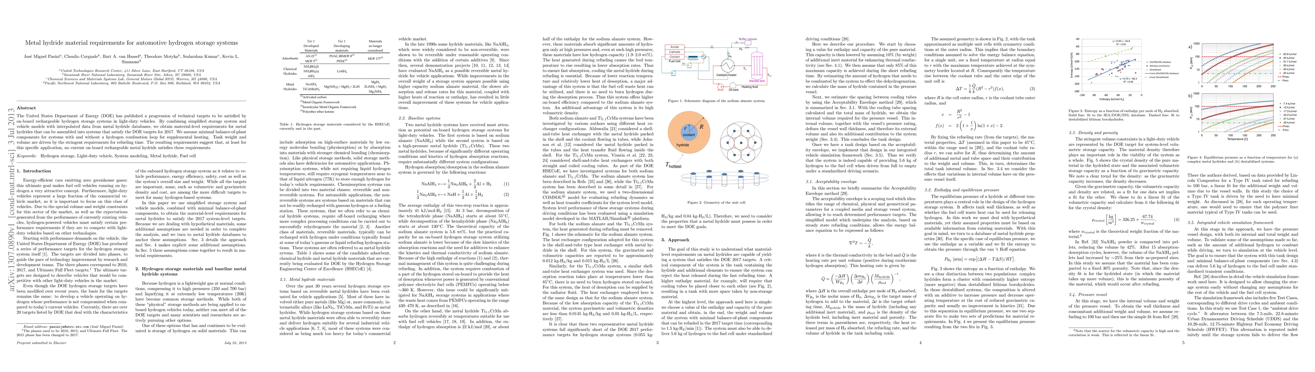 This paper evaluates metal hydride materials for automotive hydrogen storage systems against the U.S. DOE's technical targets, finding that no current on-board rechargeable metal hydride meets the stringent requirements for weight, volume, and refueling time. The study suggests further material development is needed.