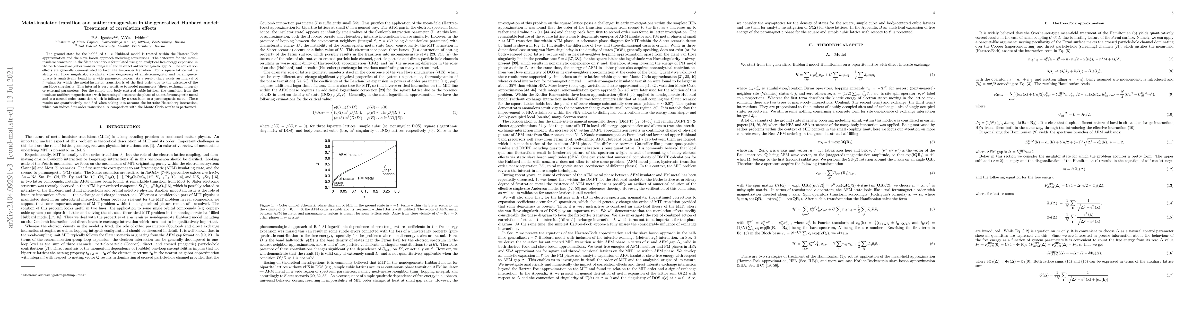 This paper investigates the metal-insulator transition and antiferromagnetism in the generalized Hubbard model using Hartree-Fock approximation and slave boson techniques. It finds that correlation effects favor first-order transitions, especially in square lattices with van Hove singularities, while simple and body-centered cubic lattices exhibit second-order transitions that can become first-order with intersite Heisenberg interactions.