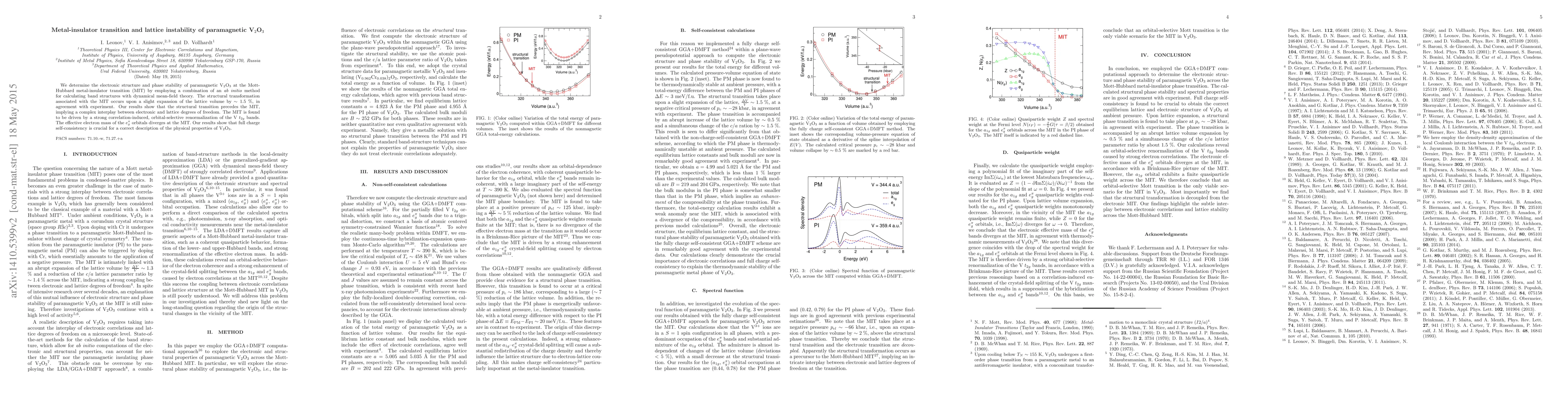 This study investigates the electronic structure and phase stability of paramagnetic V$_2$O$_3$ during its metal-insulator transition, revealing that a structural transformation occurs before the transition, driven by a lattice expansion of $\sim 1.5$%. The findings highlight the importance of electronic correlations and self-consistency in accurately describing V$_2$O$_3$'s properties.