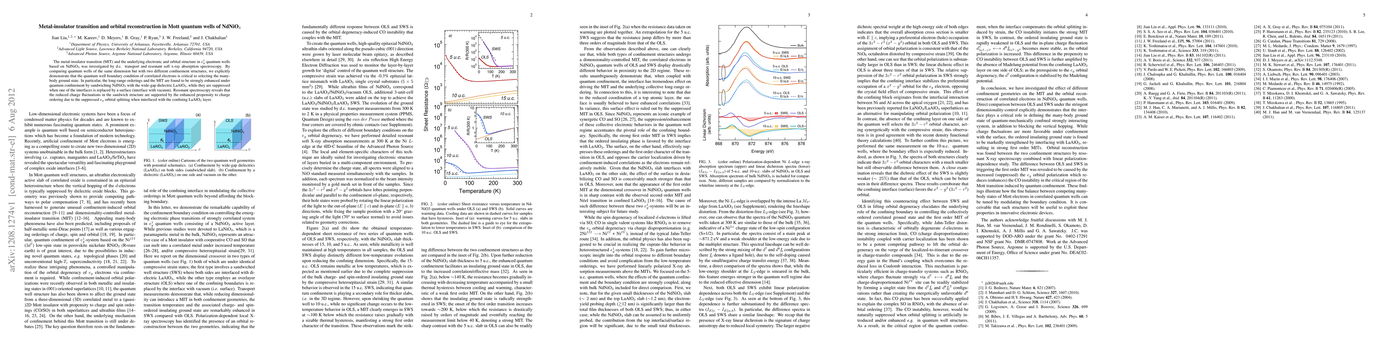 This study investigates the metal-insulator transition and orbital reconstruction in NdNiO$_3$ quantum wells using transport and resonant x-ray spectroscopy. Quantum confinement by LaAlO$_3$ significantly enhances the transition and long-range ordering, while surface interfaces suppress these effects, indicating the critical role of boundary conditions in determining the many-body ground state.