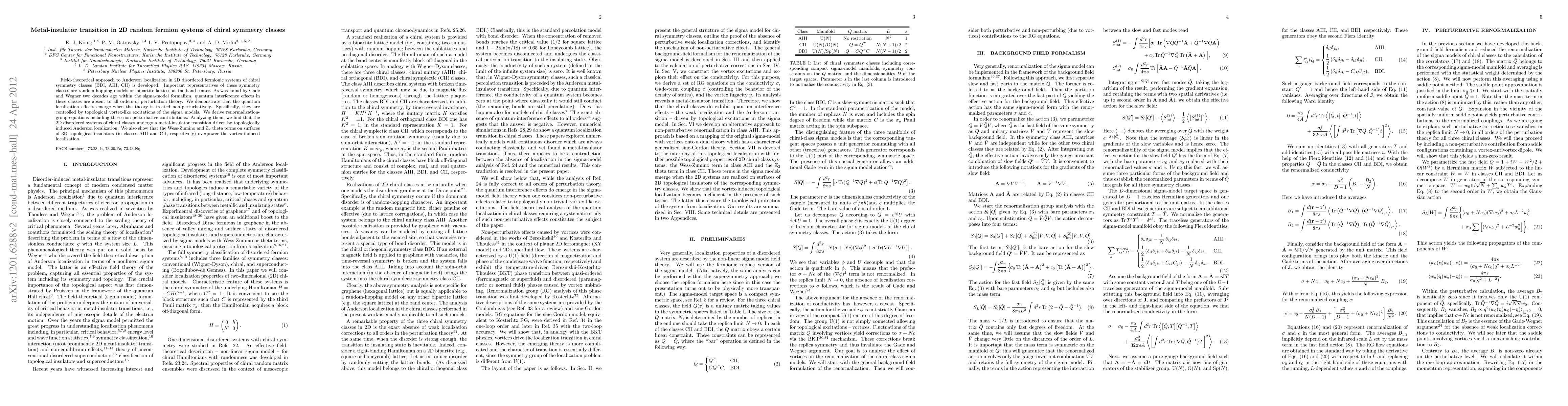This paper develops a field-theoretical approach to Anderson localization in 2D disordered fermionic systems with chiral symmetry, showing that non-perturbative effects lead to a metal-insulator transition driven by topologically induced localization. The study also finds that certain topological terms in 3D topological insulators can overcome vortex-induced localization.