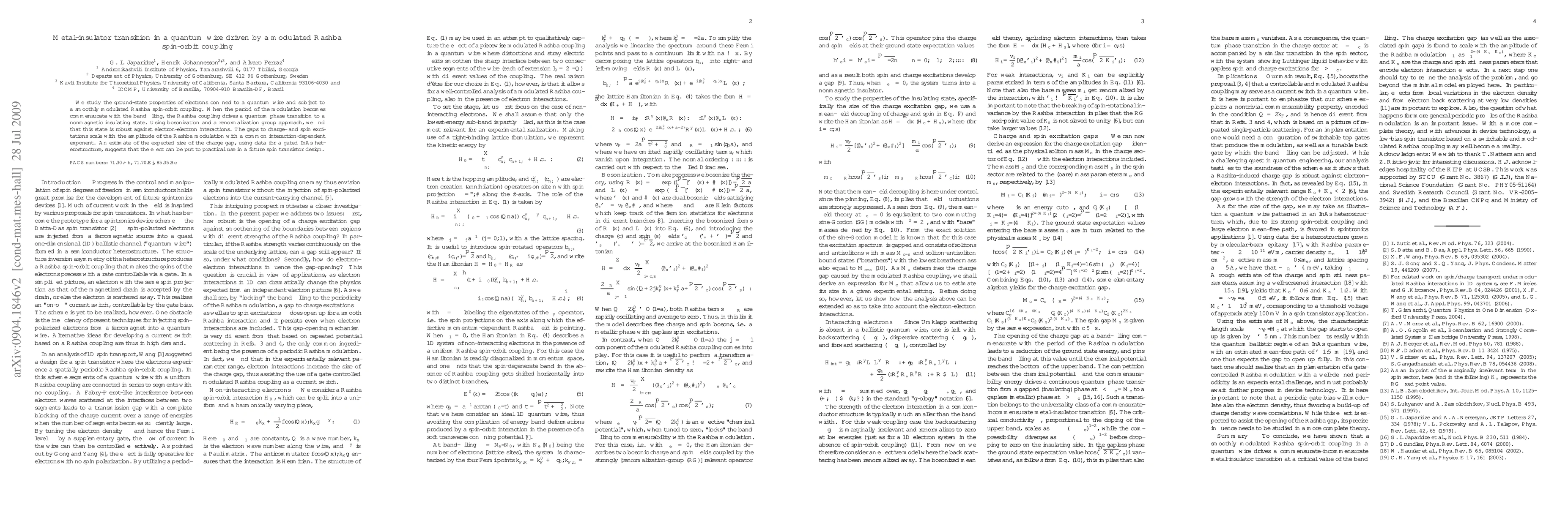 This study investigates a quantum wire under modulated Rashba spin-orbit coupling, revealing a quantum phase transition to a nonmagnetic insulating state when the modulation period matches the band filling. The transition is robust against electron-electron interactions, with charge and spin excitation gaps scaling with the modulation amplitude.