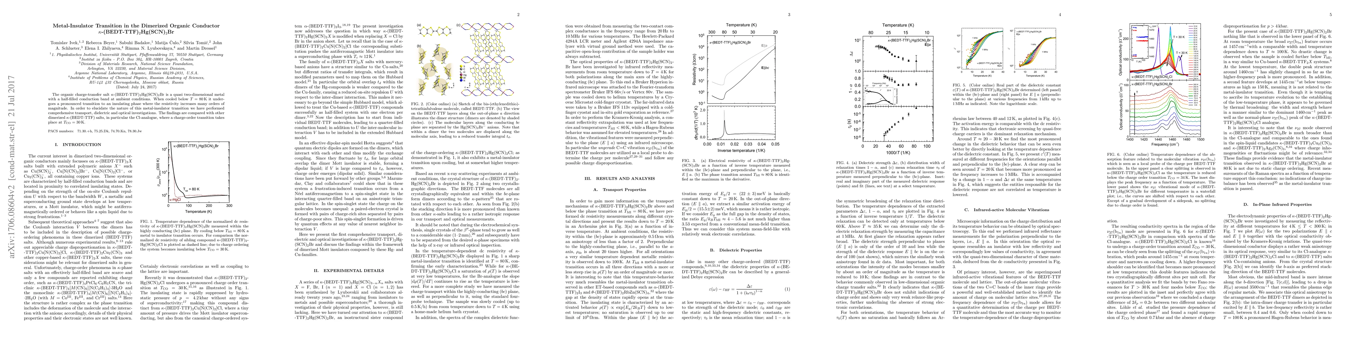 This paper investigates the metal-insulator transition in the organic conductor $\kappa$-(BEDT-TTF)$_{2}$Hg(SCN)$_{2}$Br, which shows a significant increase in resistivity upon cooling below 80 K. Comprehensive transport, dielectric, and optical studies reveal the transition's nature and compare it to the Cl-analogue, which undergoes a charge-order transition at 30 K.
