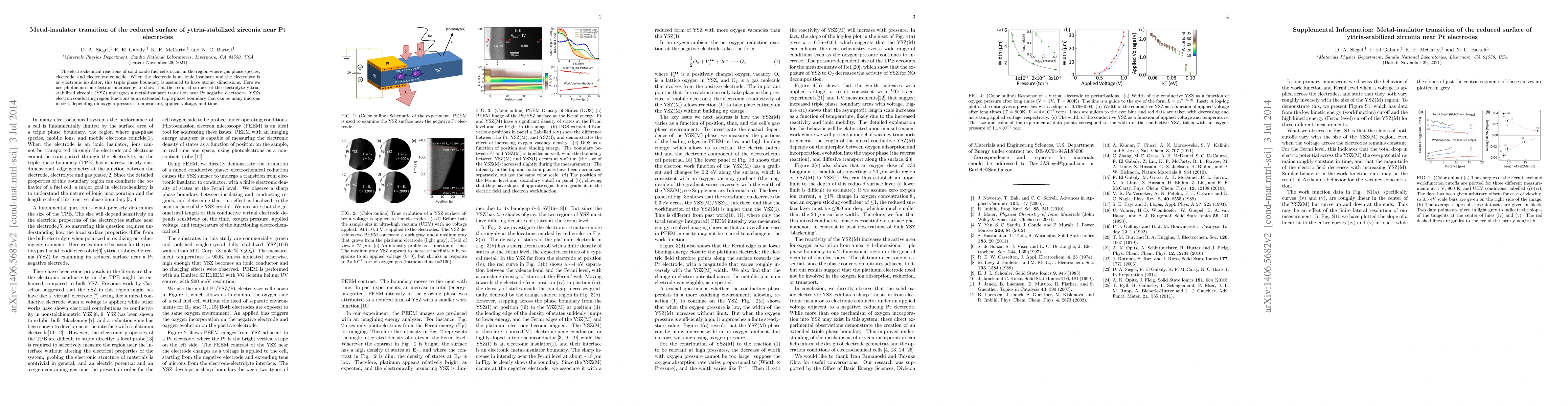 This study reveals that the reduced surface of yttria-stabilized zirconia (YSZ) undergoes a metal-insulator transition near Pt electrodes, using photoemission electron microscopy. The electron conducting region of YSZ acts as an extended triple phase boundary, influenced by oxygen pressure, temperature, applied voltage, and time.