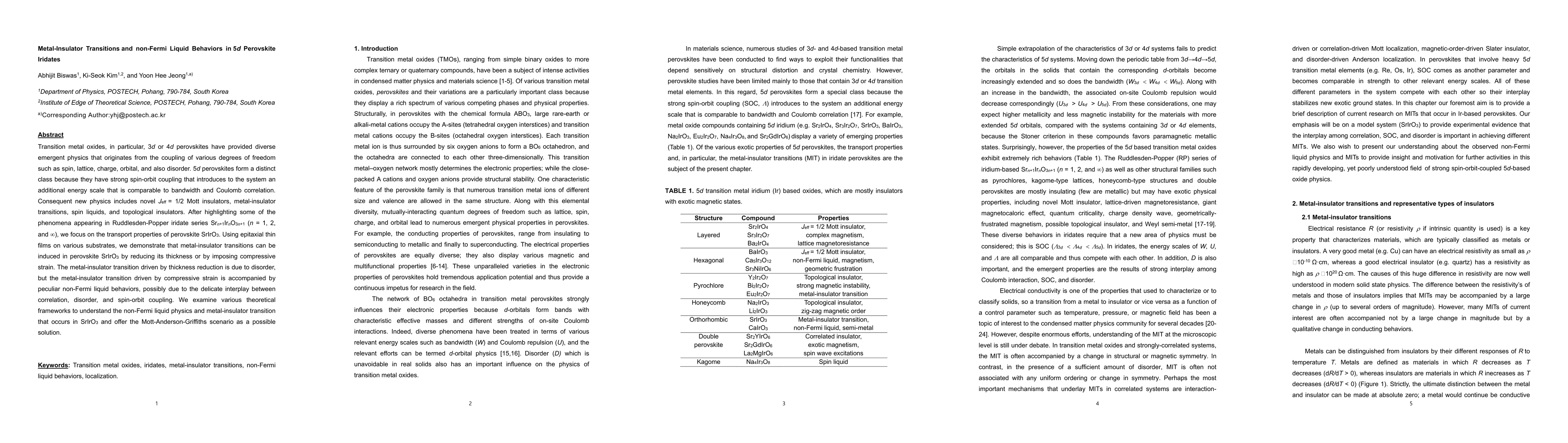The research investigates metal-insulator transitions and non-Fermi liquid behaviors in 5d perovskite iridates, specifically SrIrO3. The study reveals that SrIrO3 exhibits metal-insulator transitions induced by thickness reduction or compressive strain, with the latter accompanied by unusual non-Fermi liquid behaviors, potentially due to the complex interplay of correlation, disorder, and spin-orbit coupling.