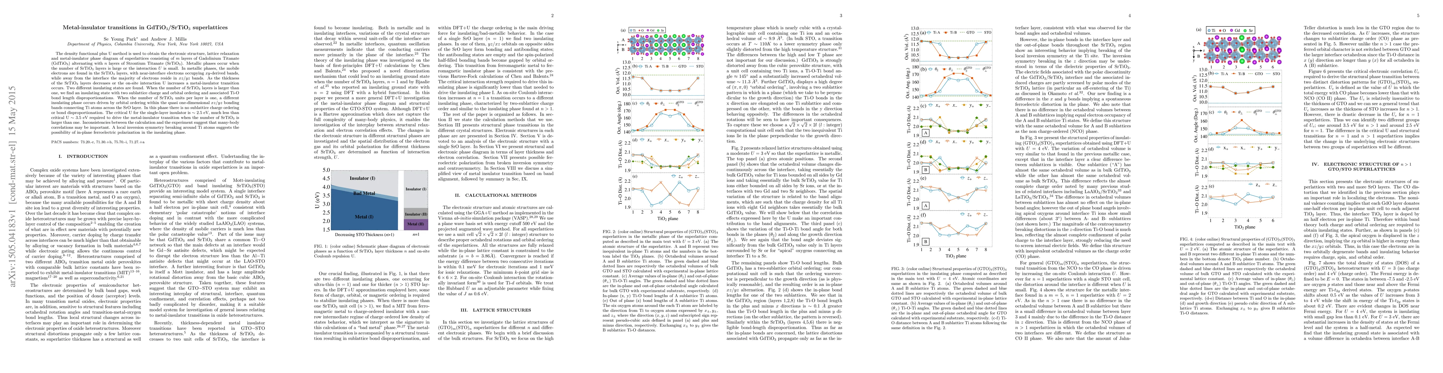 Researchers investigate metal-insulator transitions in GdTiO3/SrTiO3 superlattices using density functional plus U method, finding two insulating states with different underlying mechanisms and implications for ferroelectric polarization.
