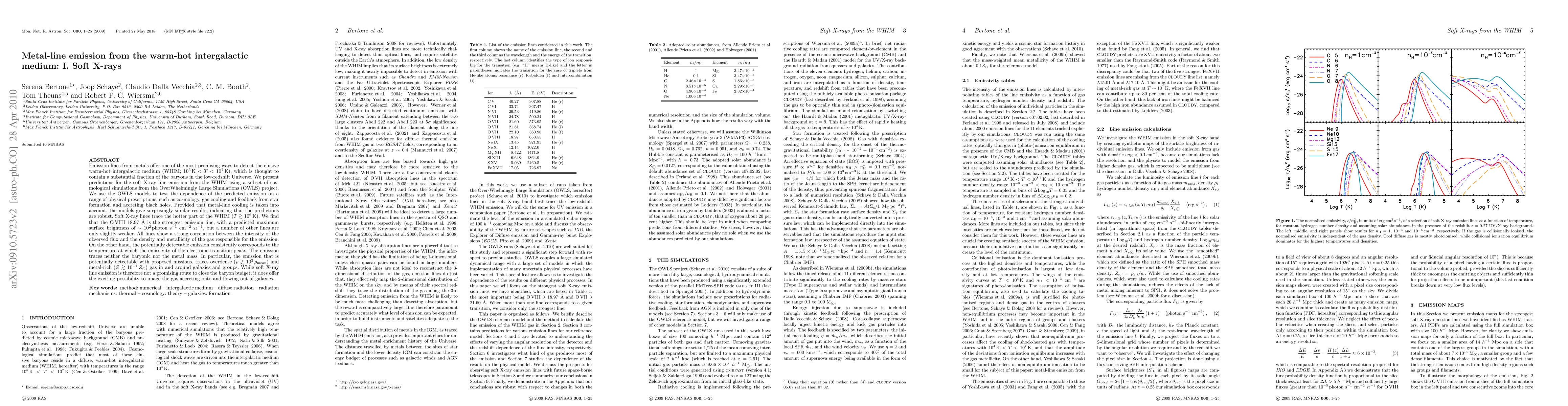 This paper predicts soft X-ray emission lines from the warm-hot intergalactic medium (WHIM) using cosmological simulations, finding that OVIII 18.97Å is the strongest line. The emission correlates with gas density and metallicity, tracing overdense and metal-rich regions around galaxies, but does not close the baryon budget.