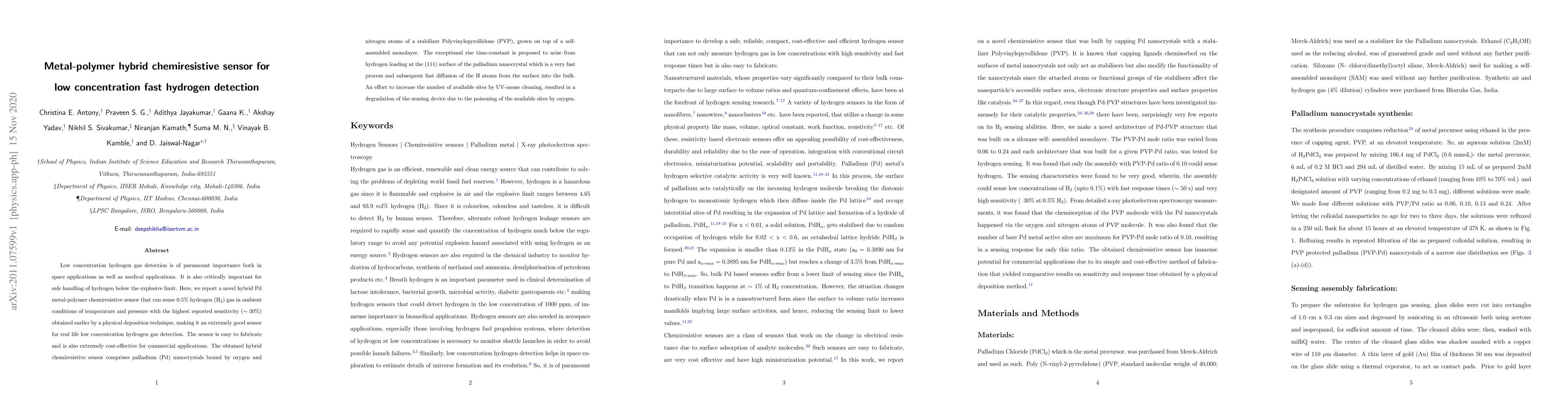 A novel metal-polymer chemiresistive sensor detects 0.5% hydrogen gas with high sensitivity and is extremely cost-effective for real-life applications.
