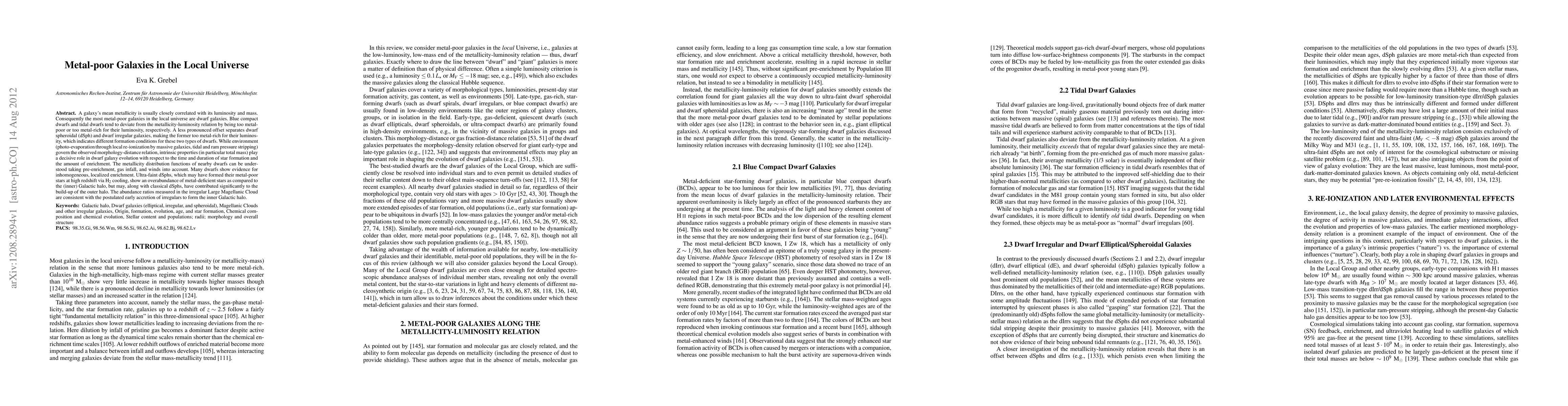 This paper explores the relationship between metallicity and luminosity in metal-poor galaxies, revealing that dwarf galaxies, especially blue compact and dwarf spheroidal types, exhibit deviations from typical metallicity-luminosity correlations due to different formation conditions and environmental influences. It highlights the role of intrinsic properties and external factors in shaping the evolution and enrichment of these galaxies.