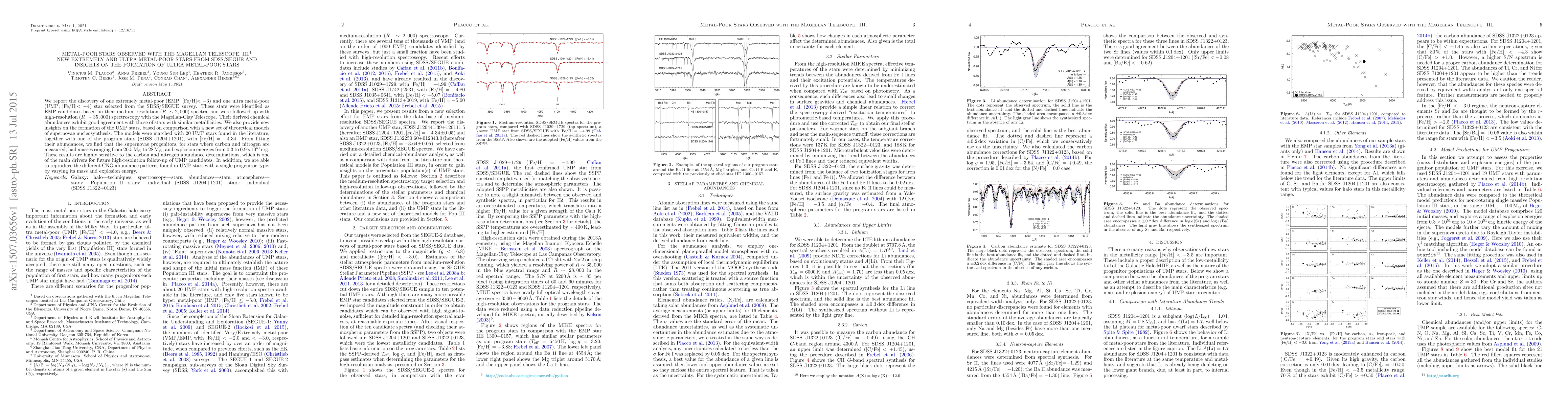 We report the discovery of one extremely metal-poor (EMP; [Fe/H]<-3) and one ultra metal-poor (UMP; [Fe/H]<-4) star selected from the SDSS/SEGUE survey. These stars were identified as EMP candidates based on their medium-resolution (R~2,000) spectra, and were followed-up with high-resolution (R~35,000) spectroscopy with the Magellan-Clay Telescope. Their derived chemical abundances exhibit good agreement with those of stars with similar metallicities. We also provide new insights on the formation of the UMP stars, based on comparison with a new set of theoretical models of supernovae nucleosynthesis. The models were matched with 20 UMP stars found in the literature, together with one of the program stars (SDSS J1204+1201), with [Fe/H]=-4.34. From fitting their abundances, we find that the supernovae progenitors, for stars where carbon and nitrogen are measured, had masses ranging from 20.5 M_sun to 28 M_sun and explosion energies from 0.3 to 0.9x10^51 erg. These results are highly sensitive to the carbon and nitrogen abundance determinations, which is one of the main drivers for future high-resolution follow-up of UMP candidates. In addition, we are able to reproduce the different CNO abundance patterns found in UMP stars with a single progenitor type, by varying its mass and explosion energy.